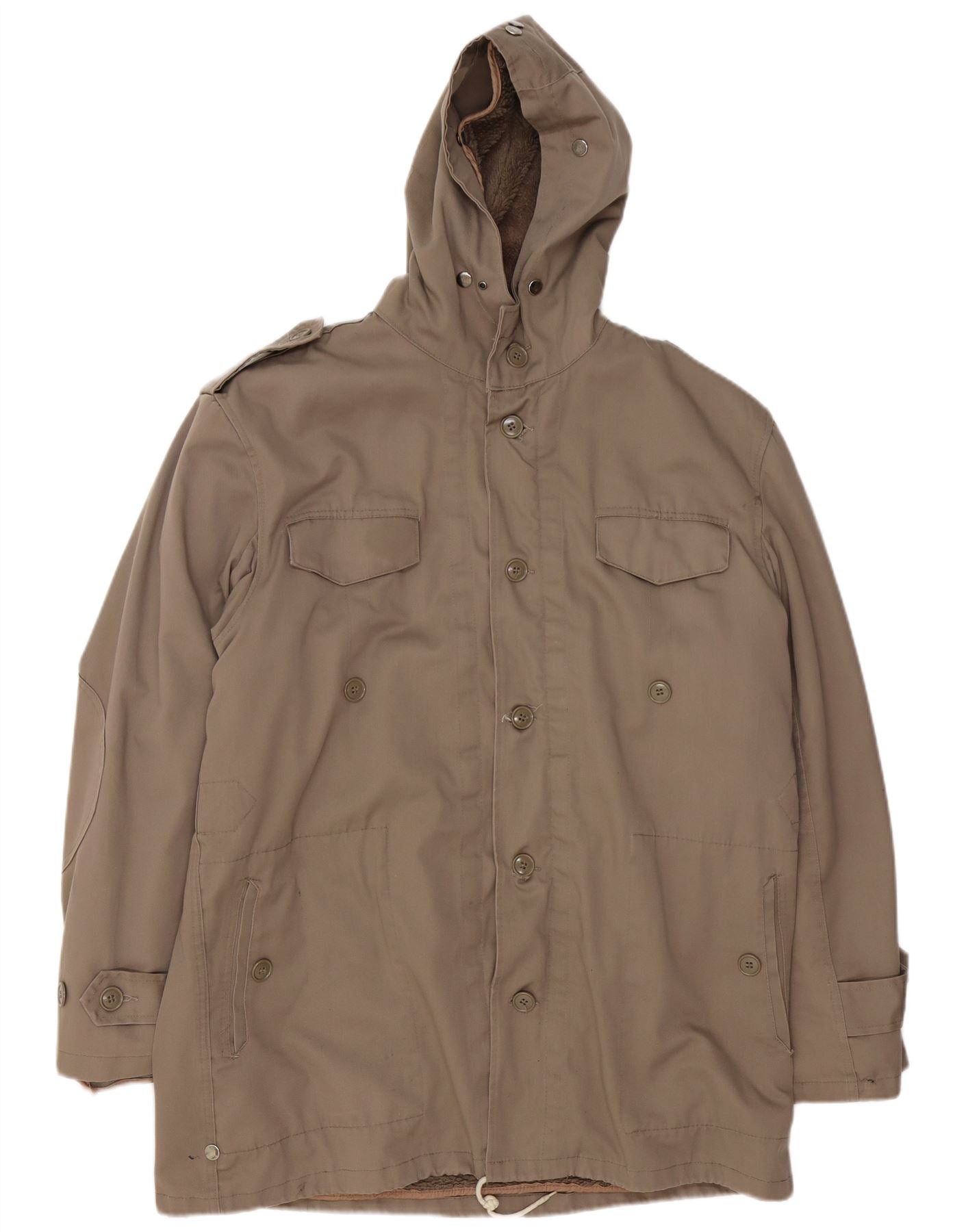 VINTAGE Mens Hooded Sherpa Parka Jacket IT 54 2XL Grey Polyester