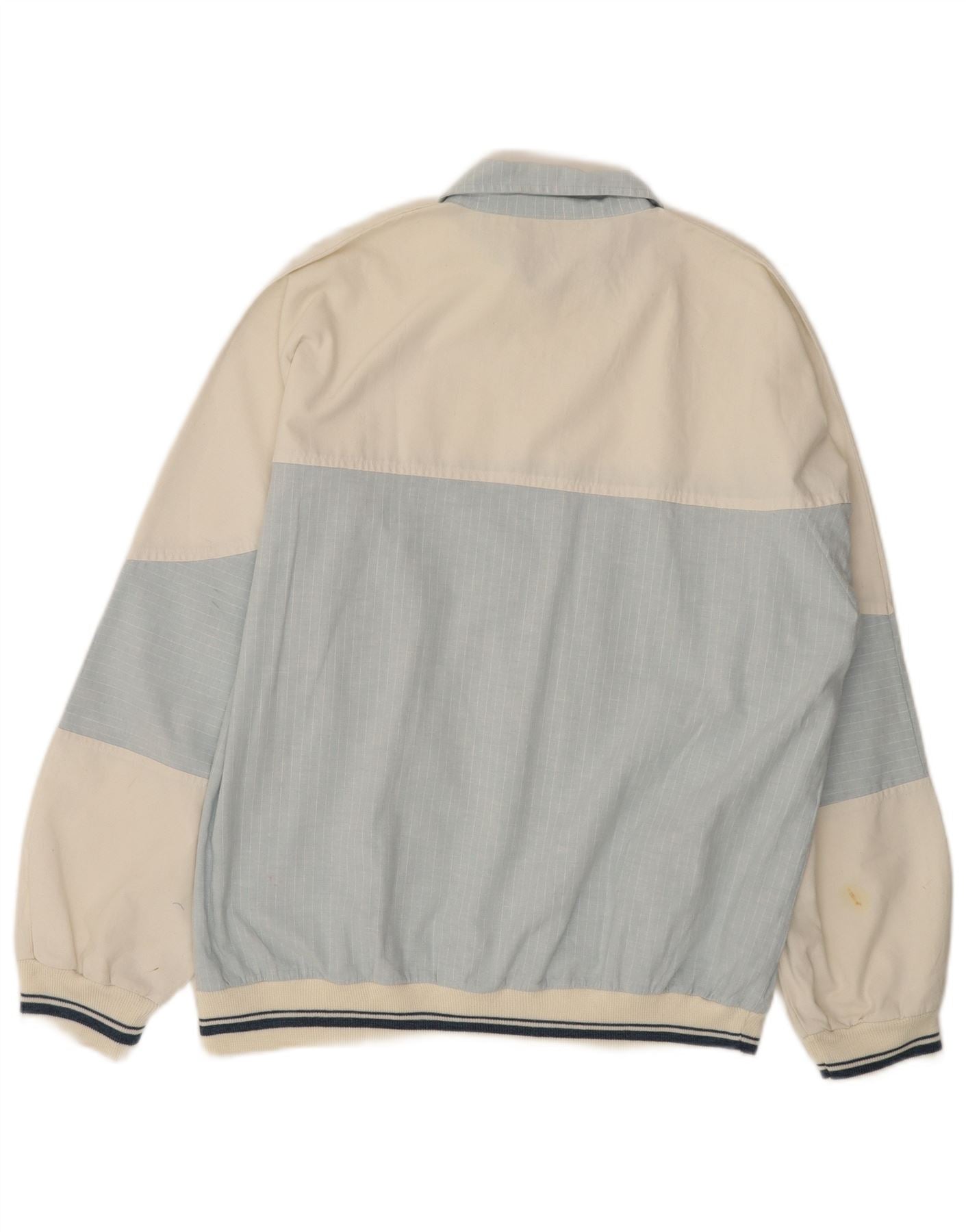 VINTAGE Herren-Langarm-Poloshirt, groß, blaue Farbblock-Baumwolle