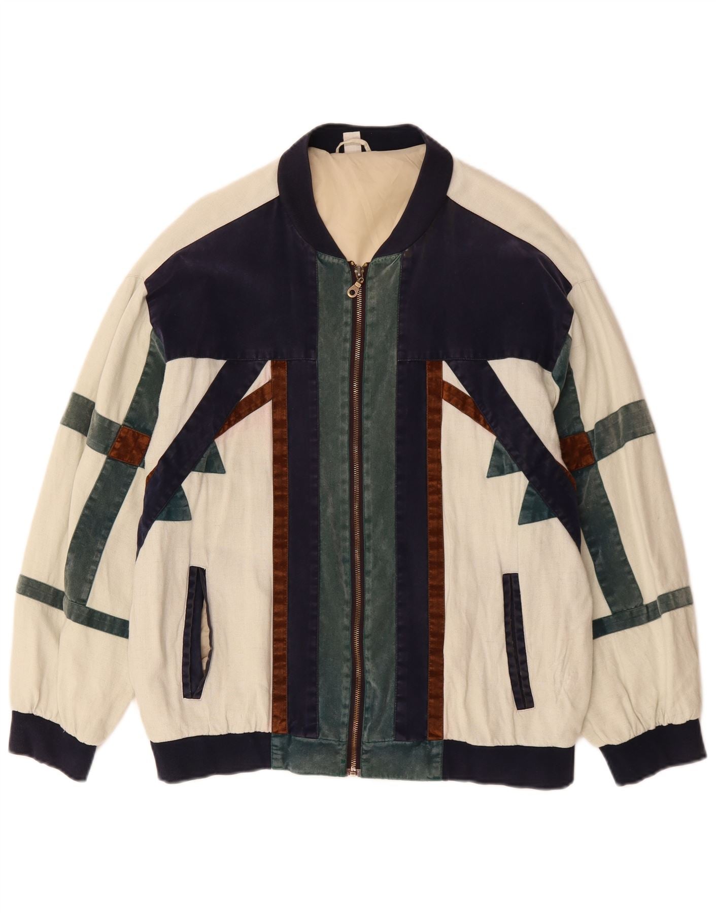 VINTAGE Herren Loose Fit Bomberjacke UK 36 Small Off White Colourblock