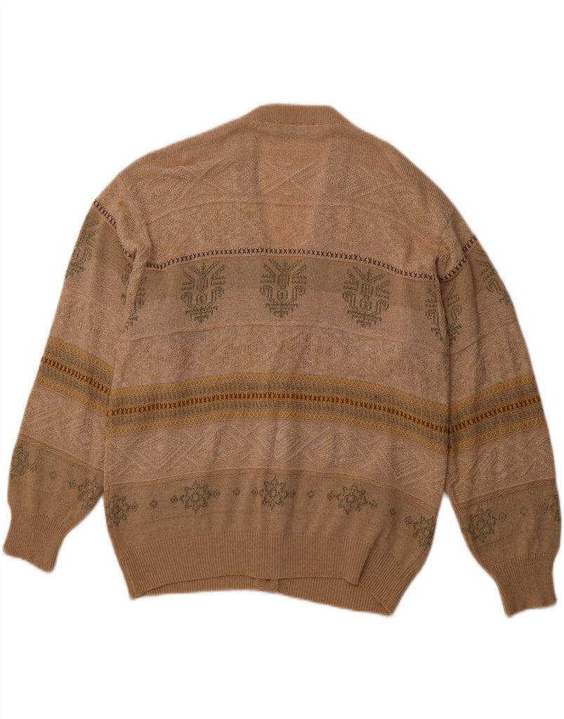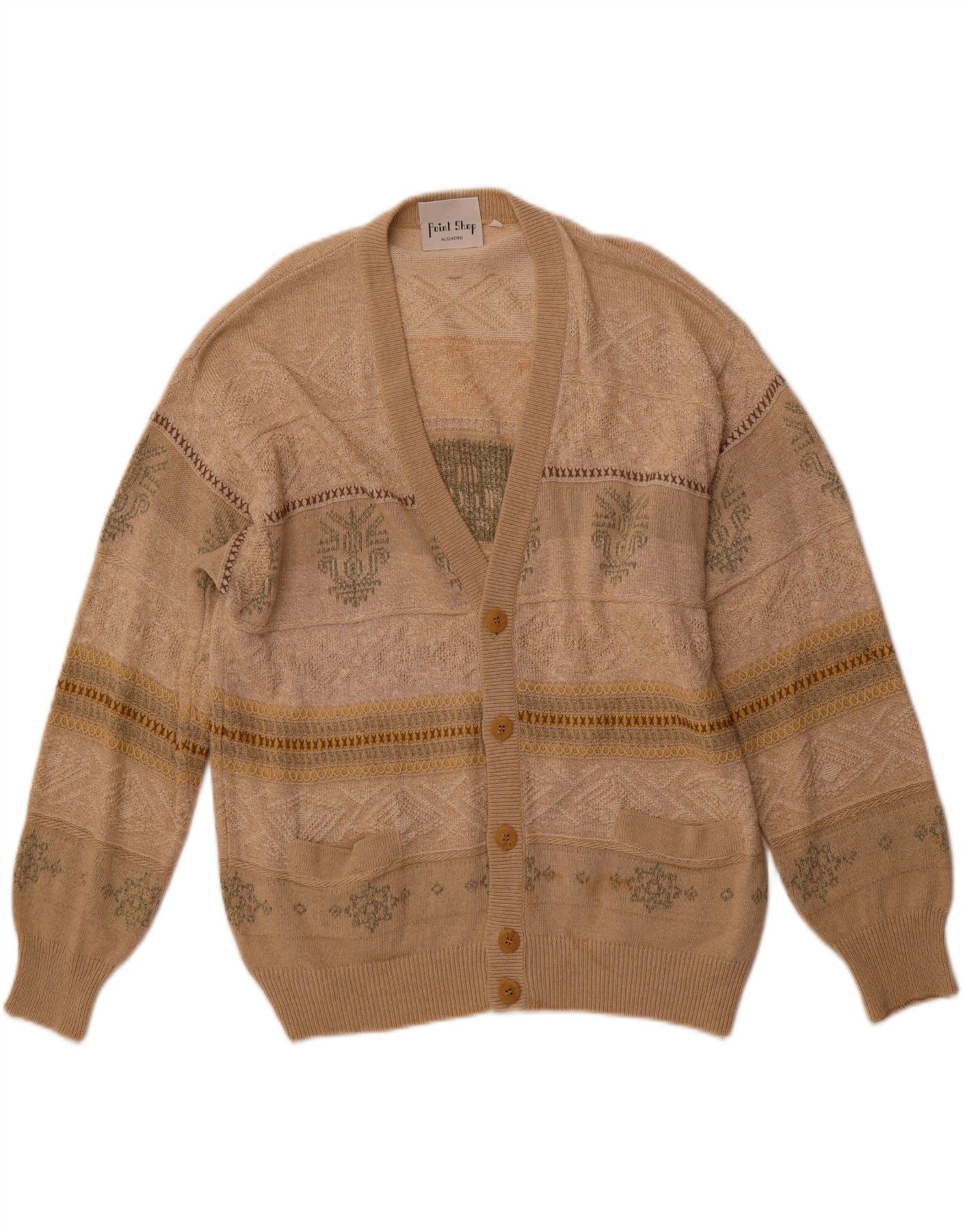 VINTAGE Herren-Strickjacke mit lockerer Passform, IT 50, Mittelbeige, Fair-Isle-Flachs
