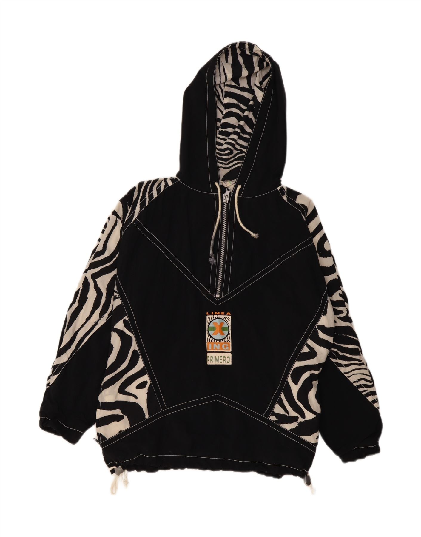 VINTAGE Herren Loose Fit Kapuzen-Anorakjacke UK 36 Kleiner schwarzer Tierdruck
