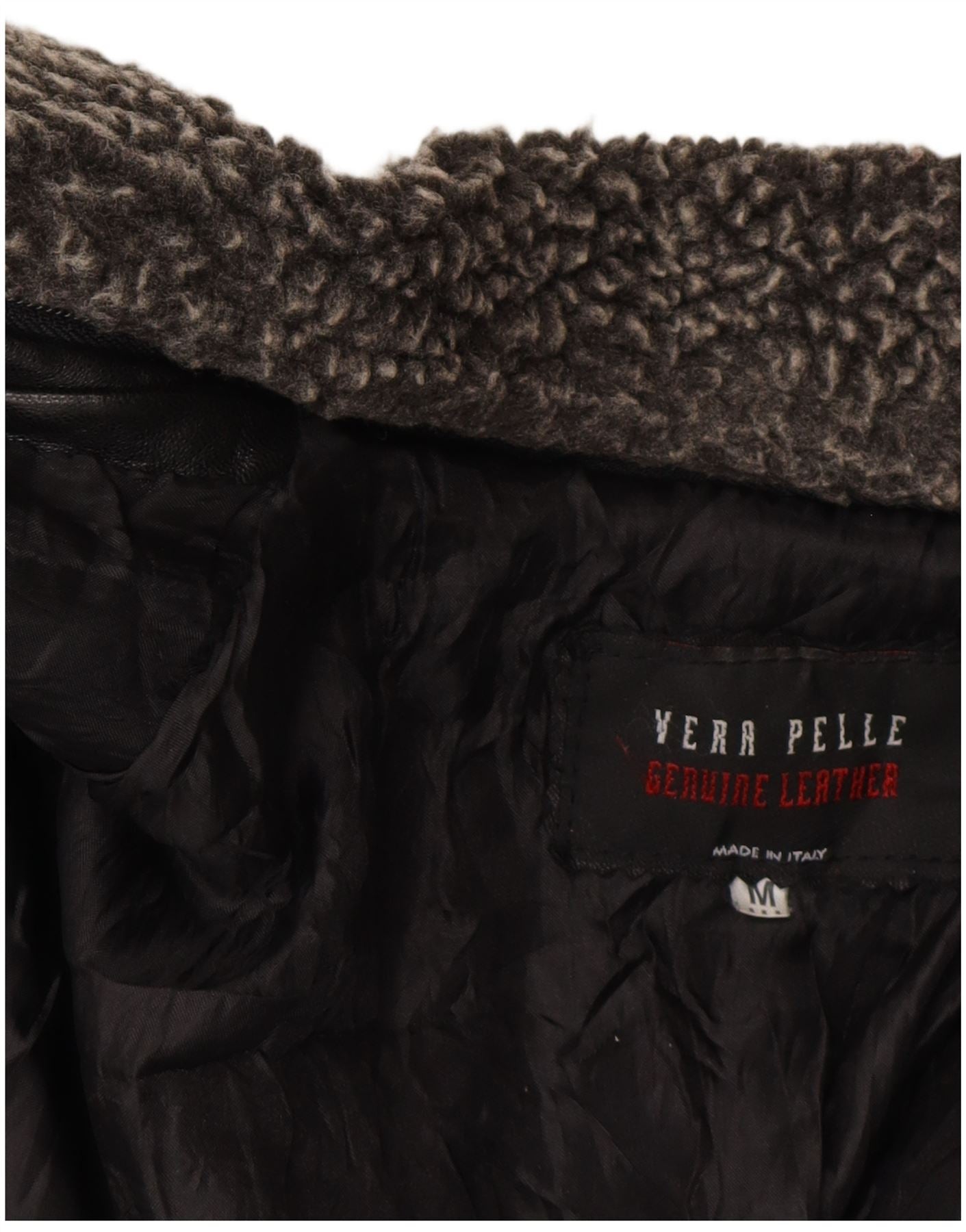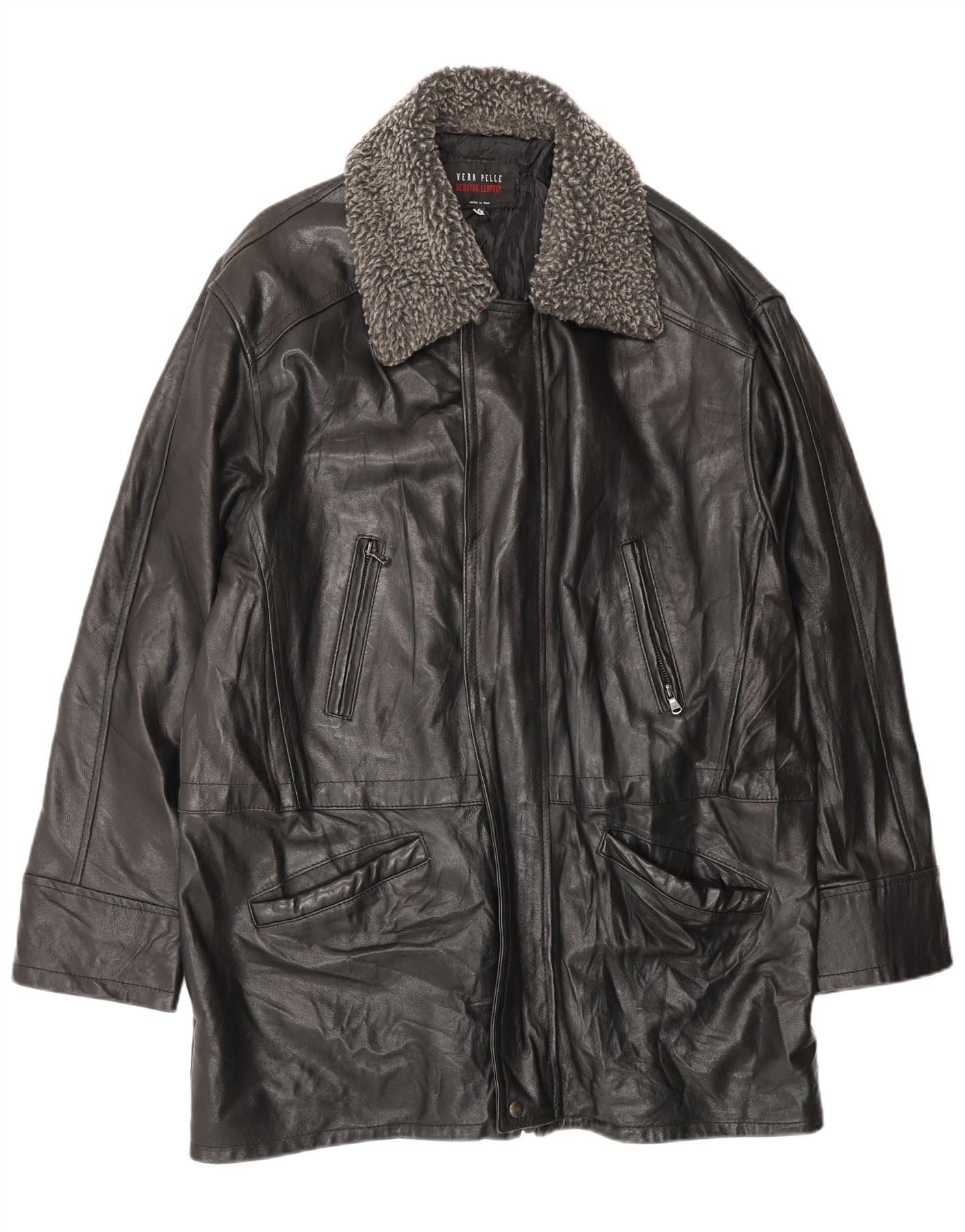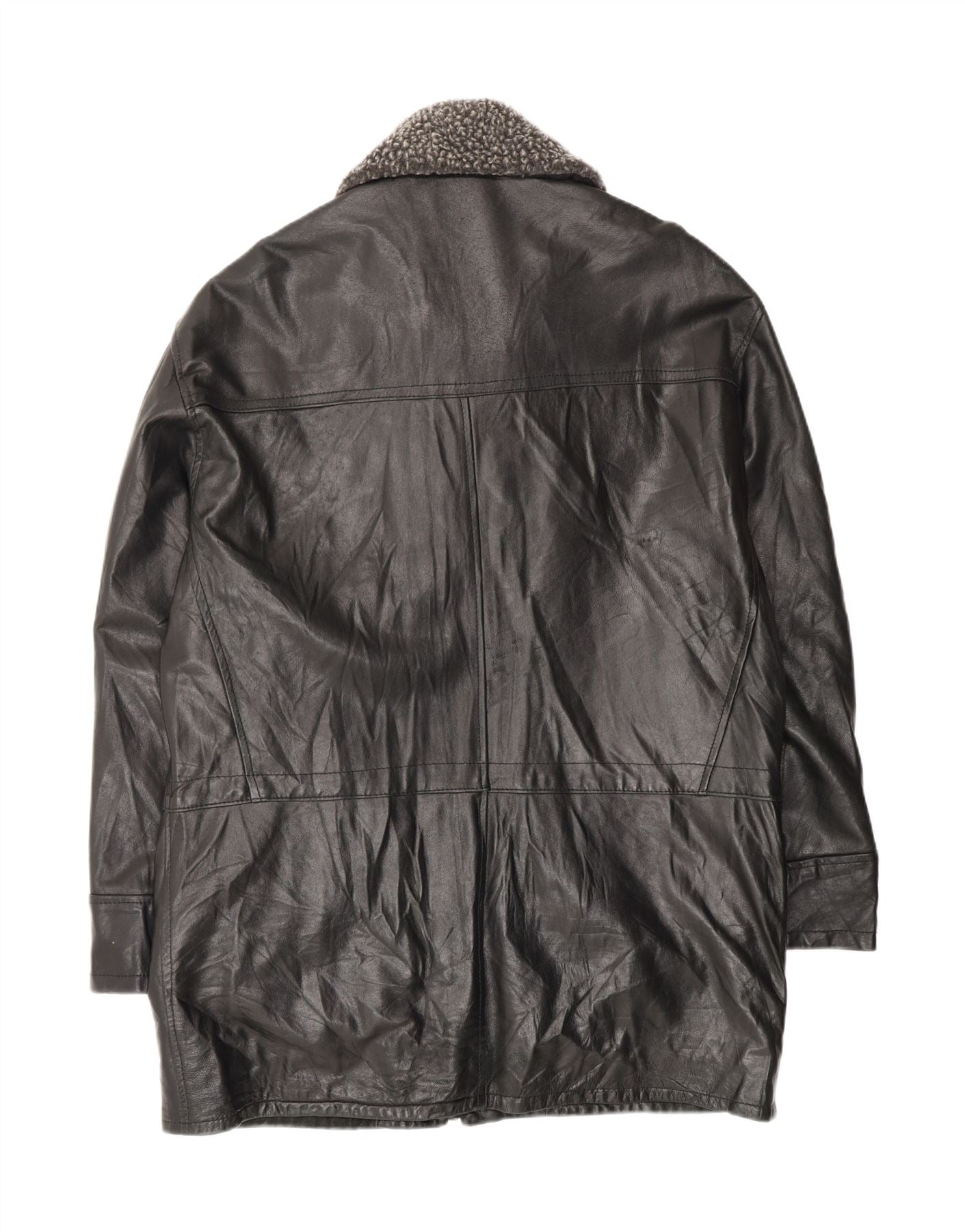 VINTAGE Herren-Ledermantel mit lockerer Passform, UK 38, mittleres schwarzes Leder