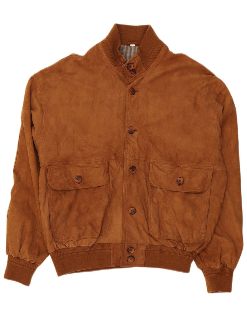 VINTAGE Mens Loose Fit Suede Bomber Jacket UK 36 Small Brown Leather