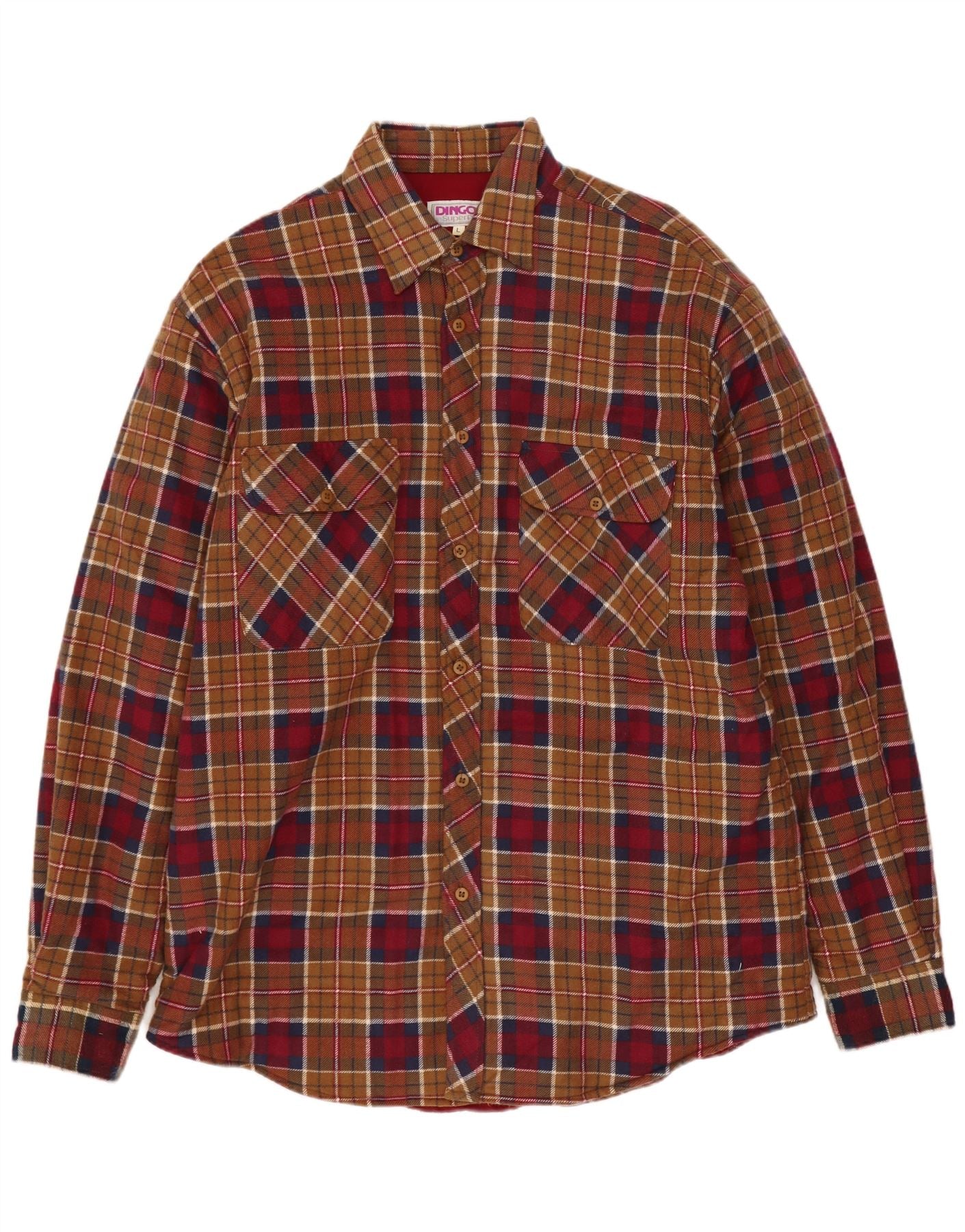 - KI-Beschreibung: Dieses Flanellhemd für Herren von Dingos ist aus weichem Baumwollflanell gefertigt und bietet Wärme und Komfort. Für zusätzliche Gemütlichkeit verfügt es über ein durchgehendes Baumwollfutter. Das mehrfarbige Karomuster kombiniert satte Rot-, Braun- und Blautöne. Ein klassischer Kragenausschnitt und eine Knopfleiste vorne verleihen ihm einen zeitlosen Reiz. Lange Ärmel mit geknöpften Manschetten. Zwei Brusttaschen sorgen für praktische Details. Die reguläre Passform sorgt für angenehmen Tragekomfort.