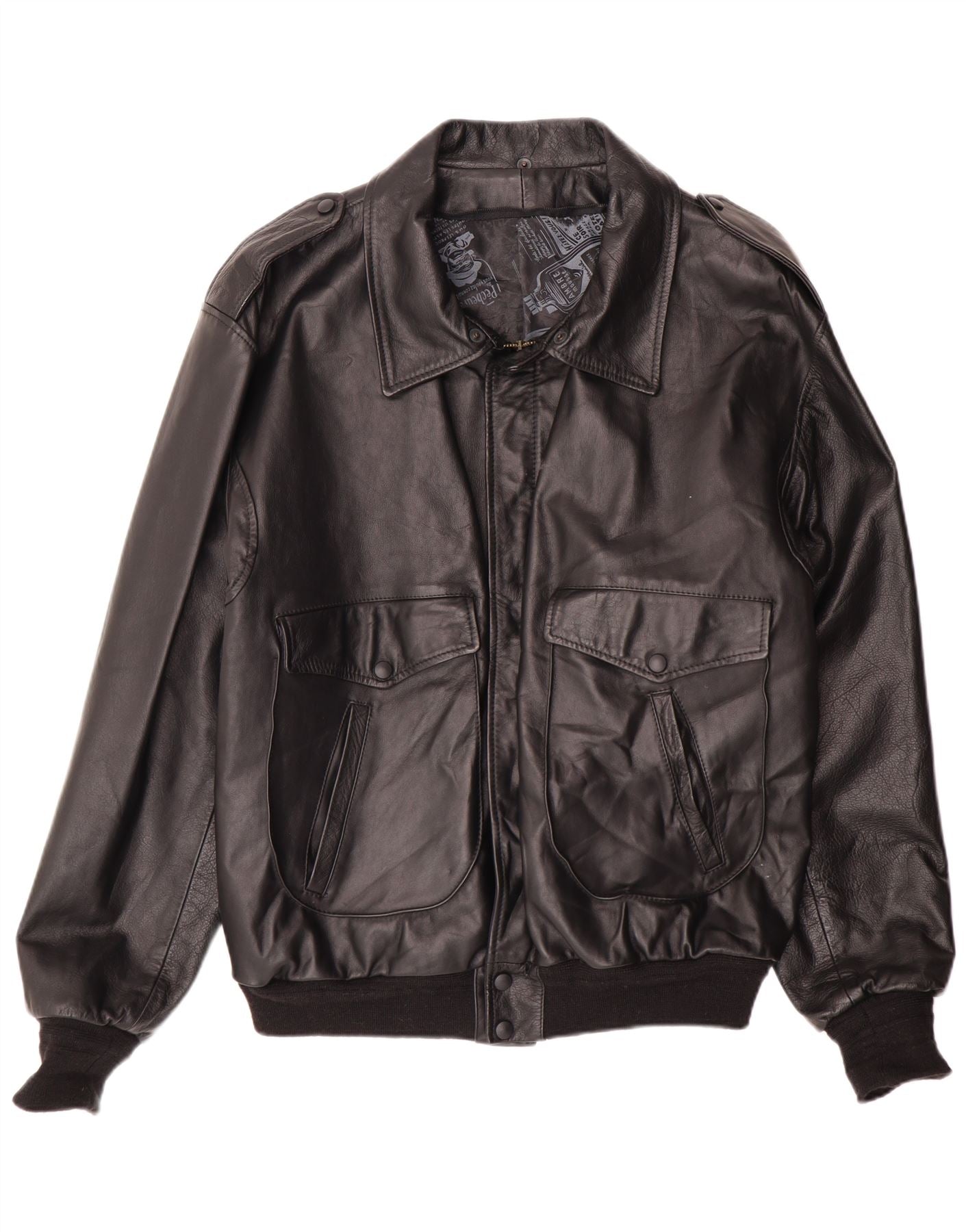 - KI-Beschreibung: Diese Vintage-Bomberjacke für Herren ist aus schwarzem Glattleder gefertigt und versprüht einen klassischen Retro-Stil. Es verfügt über einen Kragenausschnitt und einen durchgehenden Reißverschluss. Die langen Ärmel enden mit gerippten Bündchen, die den gerippten Saum ergänzen. Zwei große Vordertaschen mit geknöpften Klappen sorgen für praktische Details. Schulterklappen mit Knopfakzenten unterstreichen den authentischen Piloten-Look. Die reguläre Passform sorgt für angenehmen Tragekomfort.