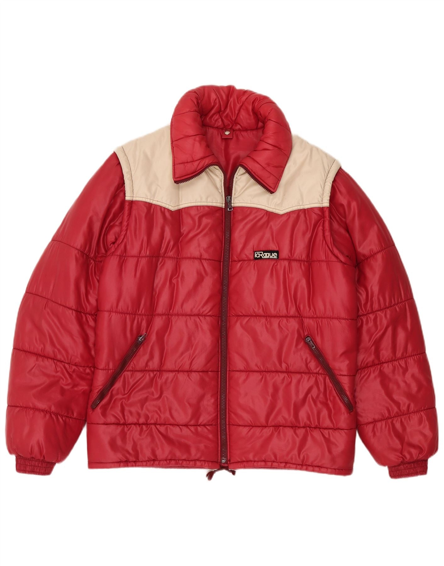 VINTAGE Wattierte Herrenjacke UK 40 Großes rotes Colourblock-Polyamid