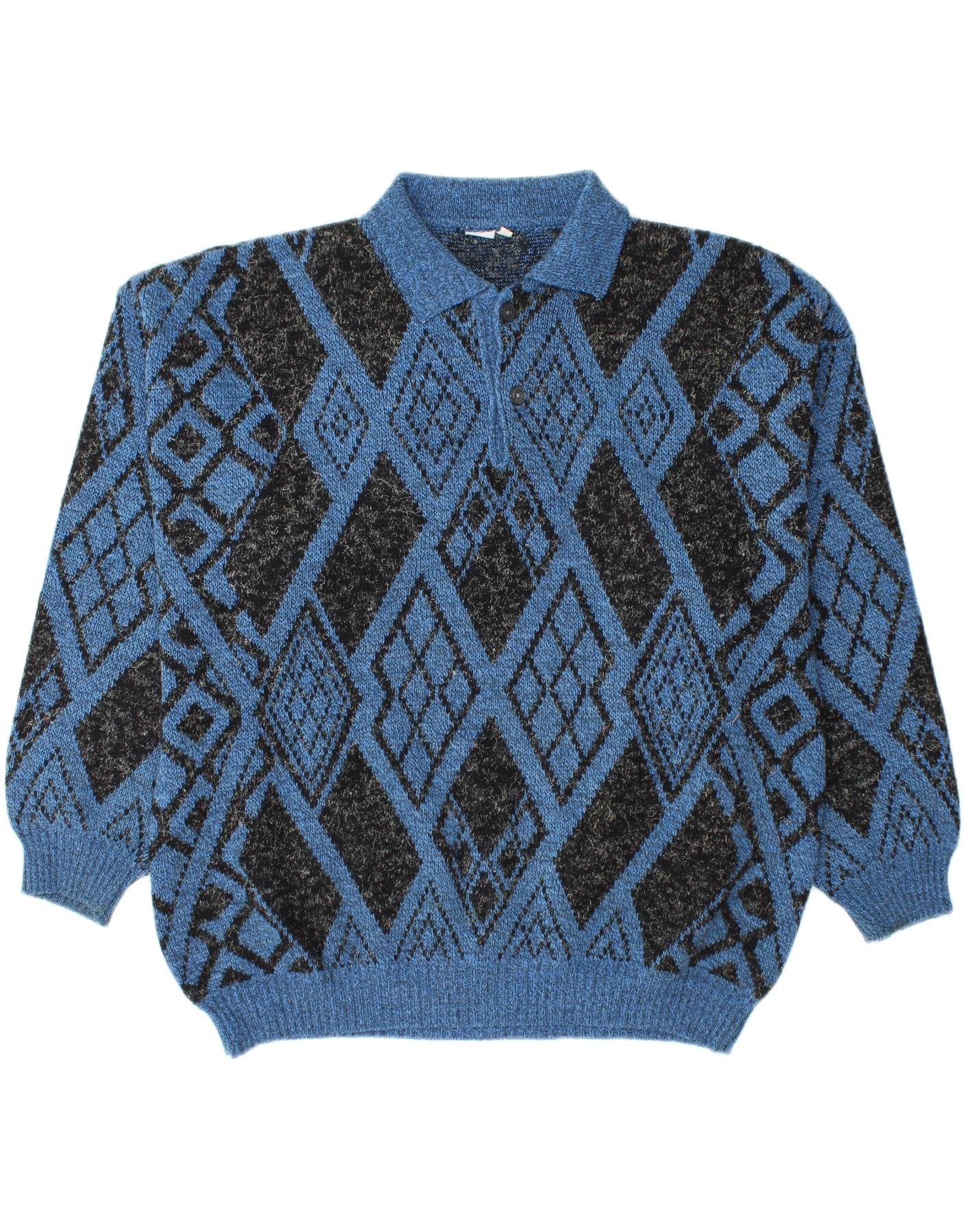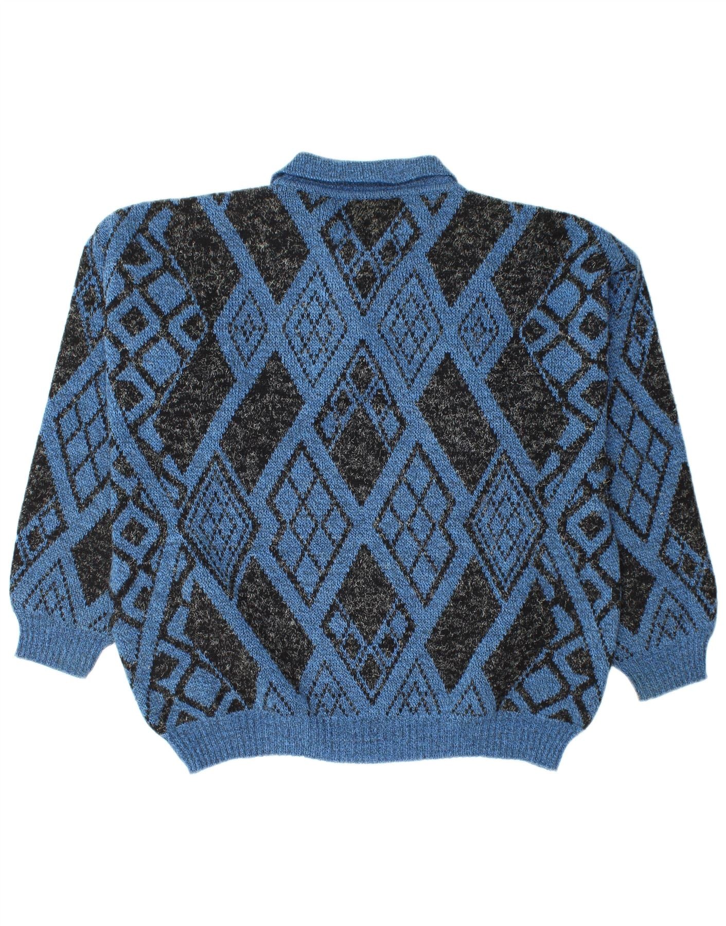 VINTAGE Herren-Pullover mit Rollkragen, groß, blau, Argyle/Diamant