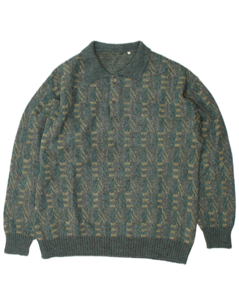 VINTAGE Herren-Pullover mit Rollkragen, groß, grün gestreift, Mohair