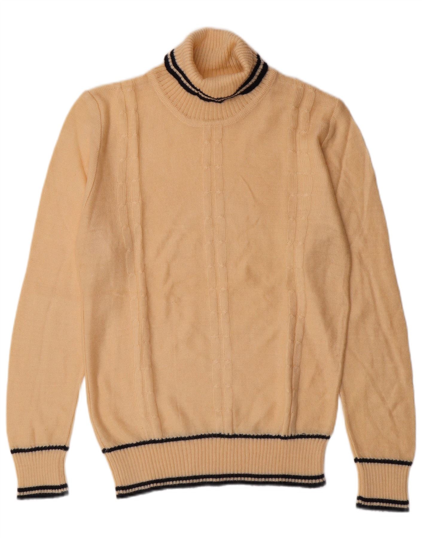 VINTAGE Rollkragenpullover für Herren, klein, beige, gestreift, klassisch