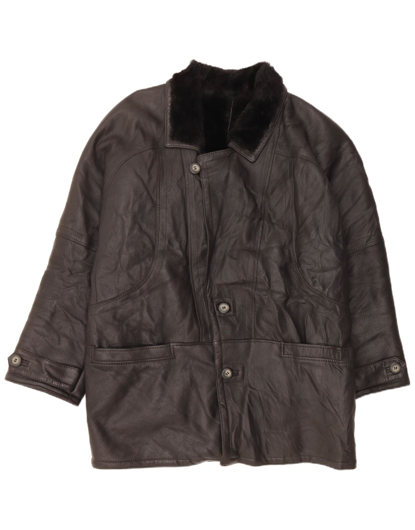 VINTAGE Herren-Shearling-Mantel IT 52 XL Schwarzer Shearling