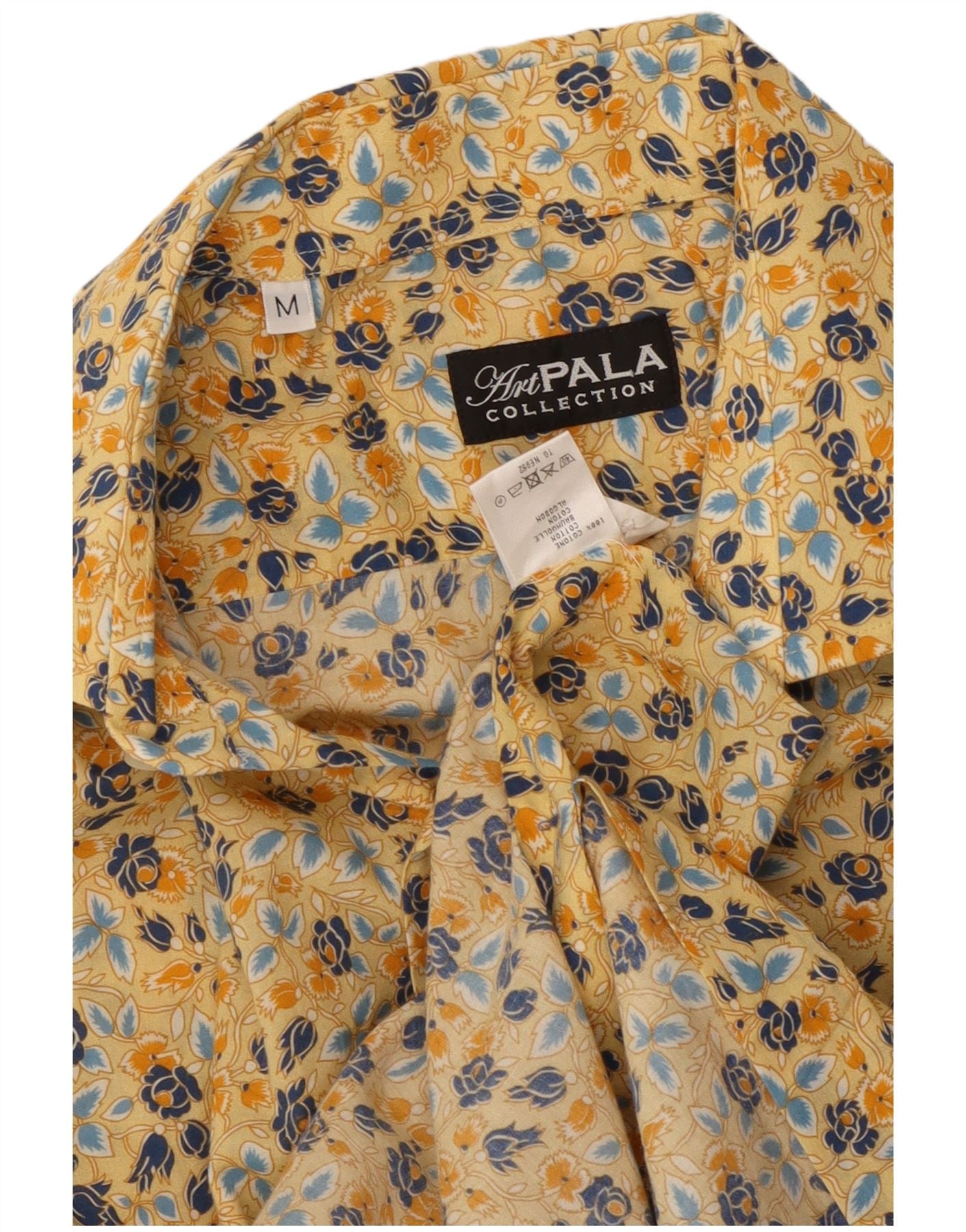 Vintage Herrenhemd Mittelgelb Blumen Baumwolle Boho