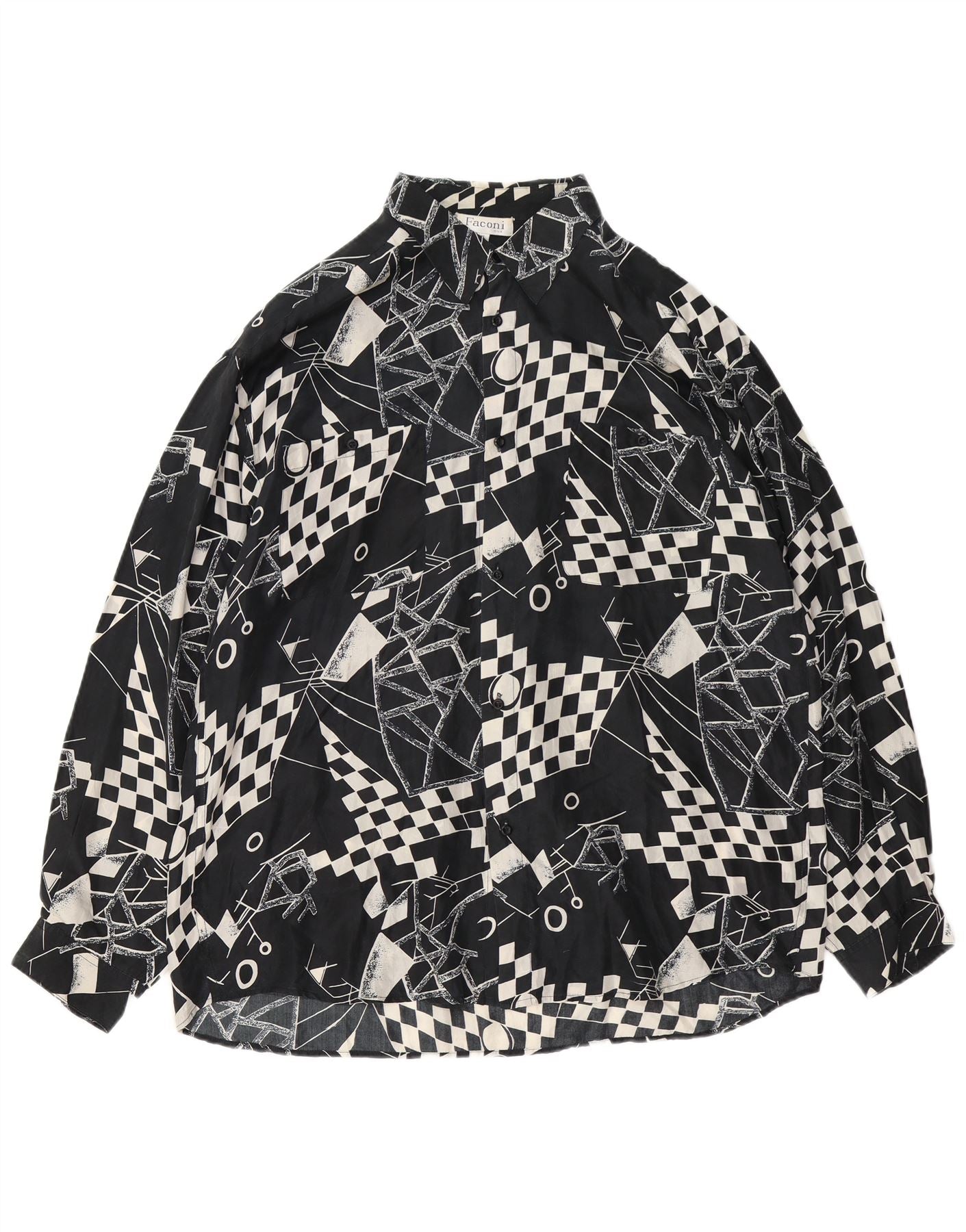 VINTAGE Herrenhemd XL schwarze geometrische Seide