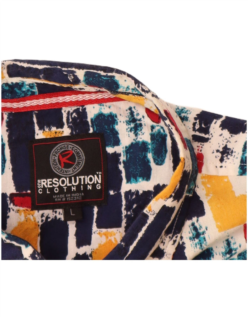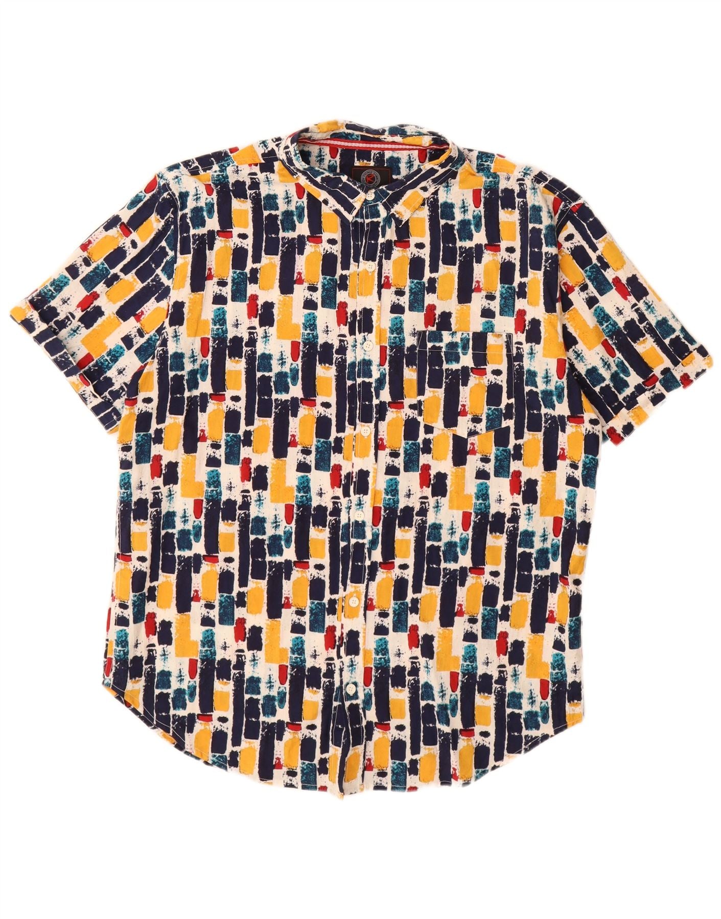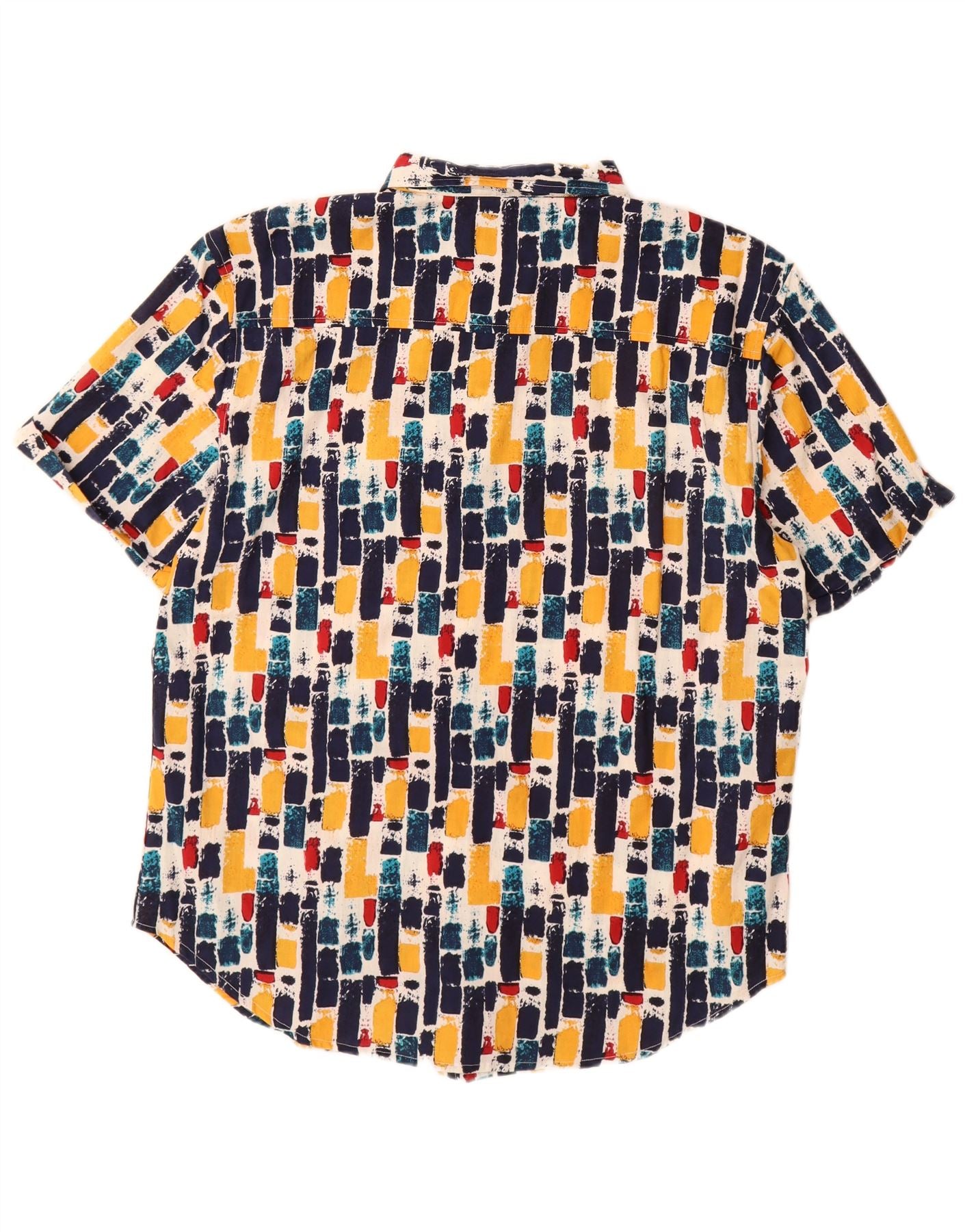 VINTAGE Herren-Kurzarmhemd, groß, mehrfarbig, geometrisch, Baumwolle