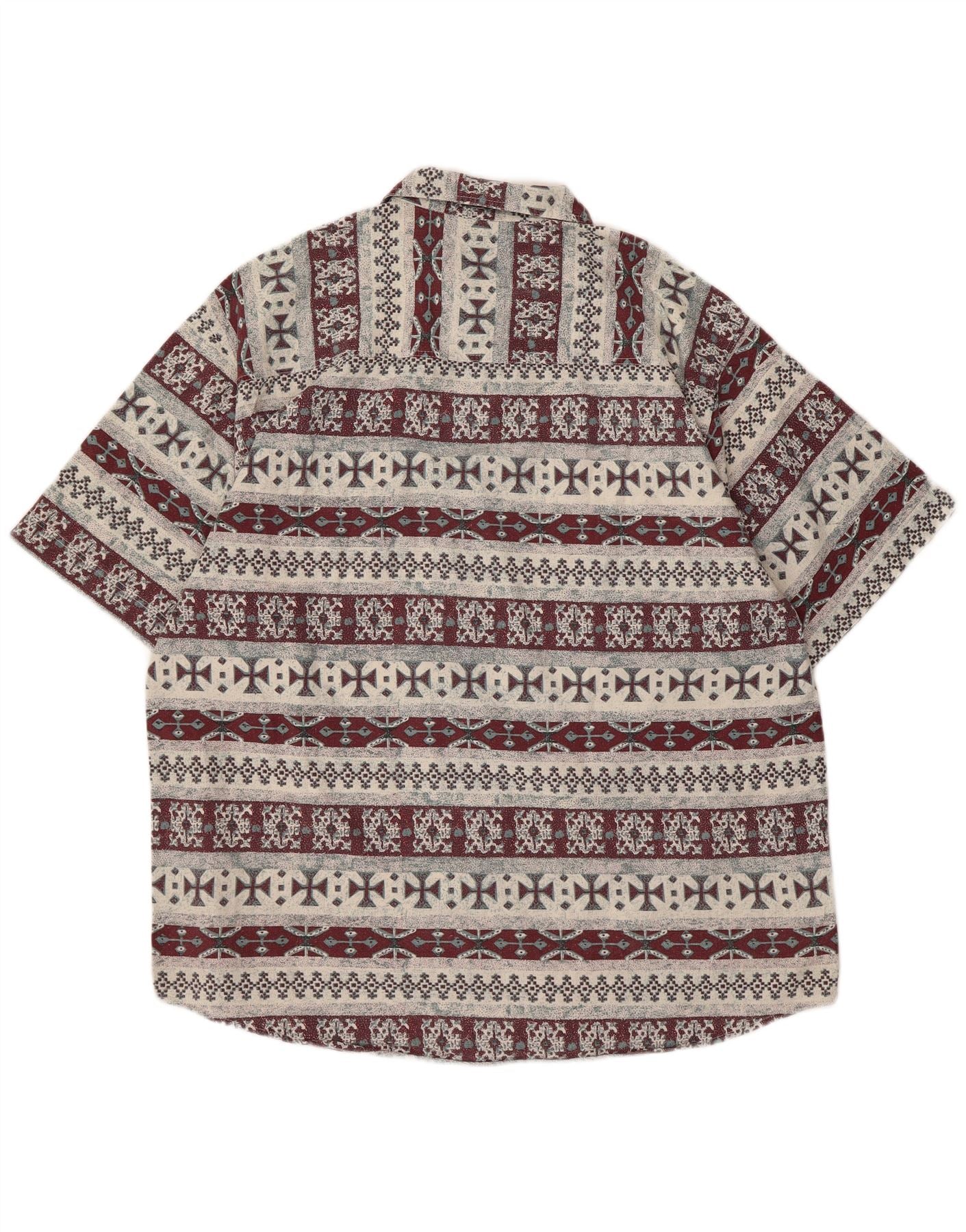 Vintage Herren Kurzarmshirt XL Burgund Geometrisch Aztekisch