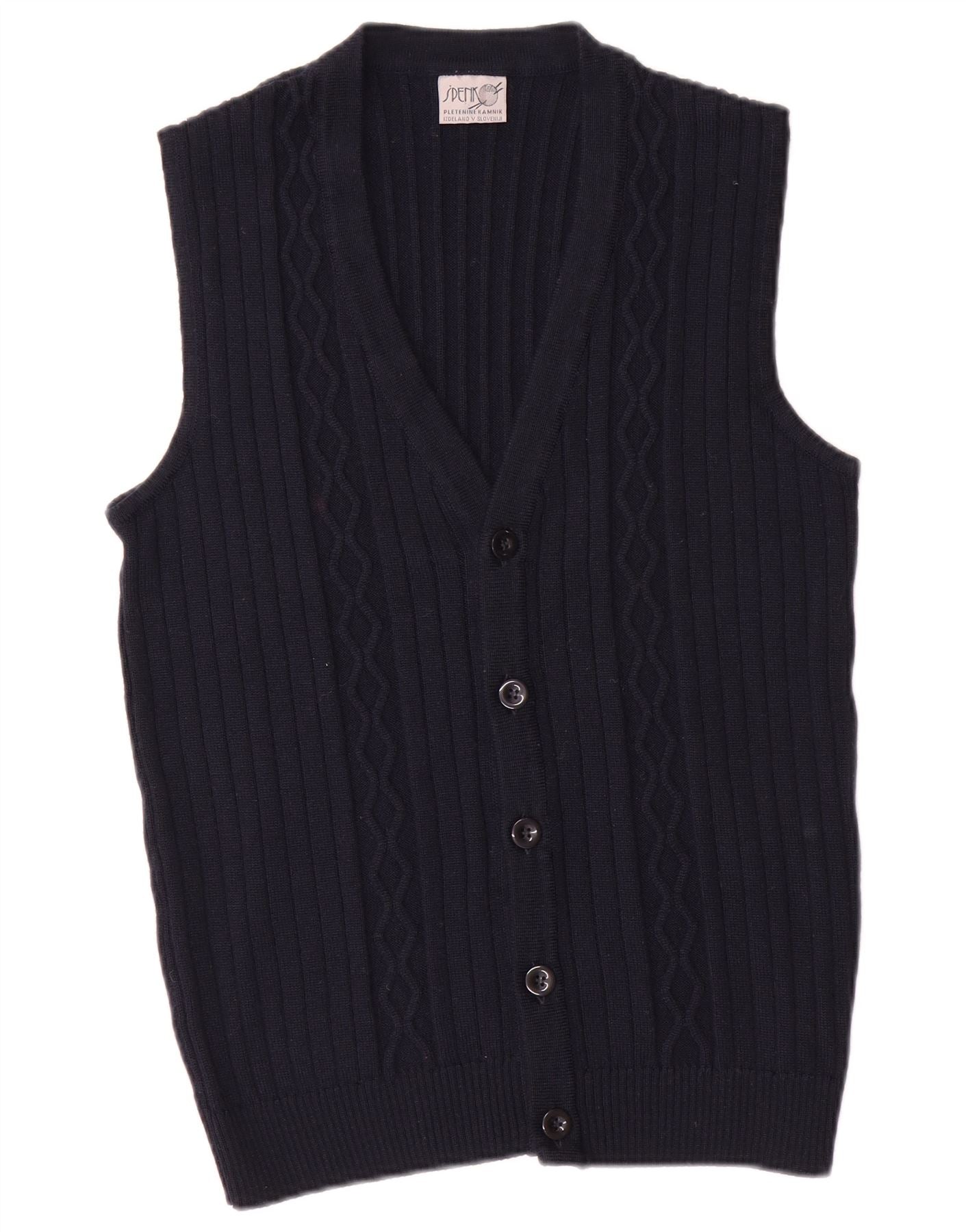 Vintage Herren Ärmelloser Cardigan Pullover Klein Marineblau