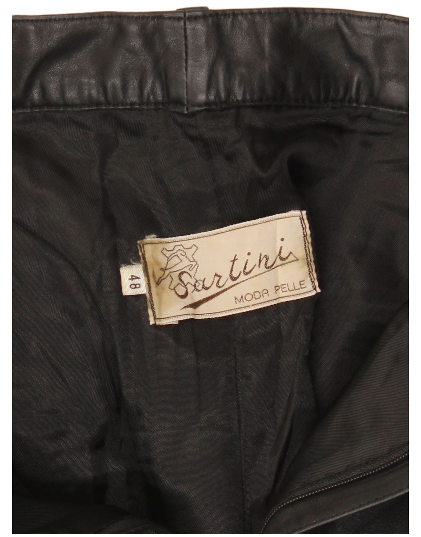 - KI-Beschreibung: Diese Damenhose von Vintage Sartini ist aus luxuriösem schwarzem Leder gefertigt und bietet eine glatte, geschmeidige Textur. Sie verfügen über eine klassische reguläre Passform und einen sicheren Reißverschluss. Das Design ist klar und minimalistisch und konzentriert sich auf das hochwertige Material. Diese Hose ist eine raffinierte und vielseitige Ergänzung für jede Garderobe.