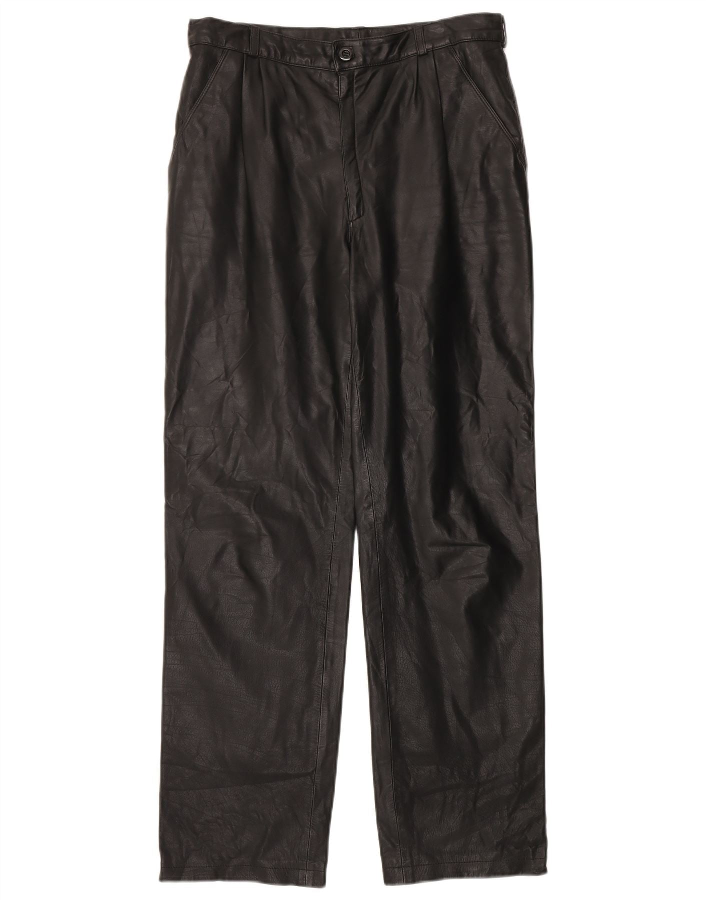 VINTAGE Herren gerade Lederhose IT 48 Medium W32 L31 Schwarz