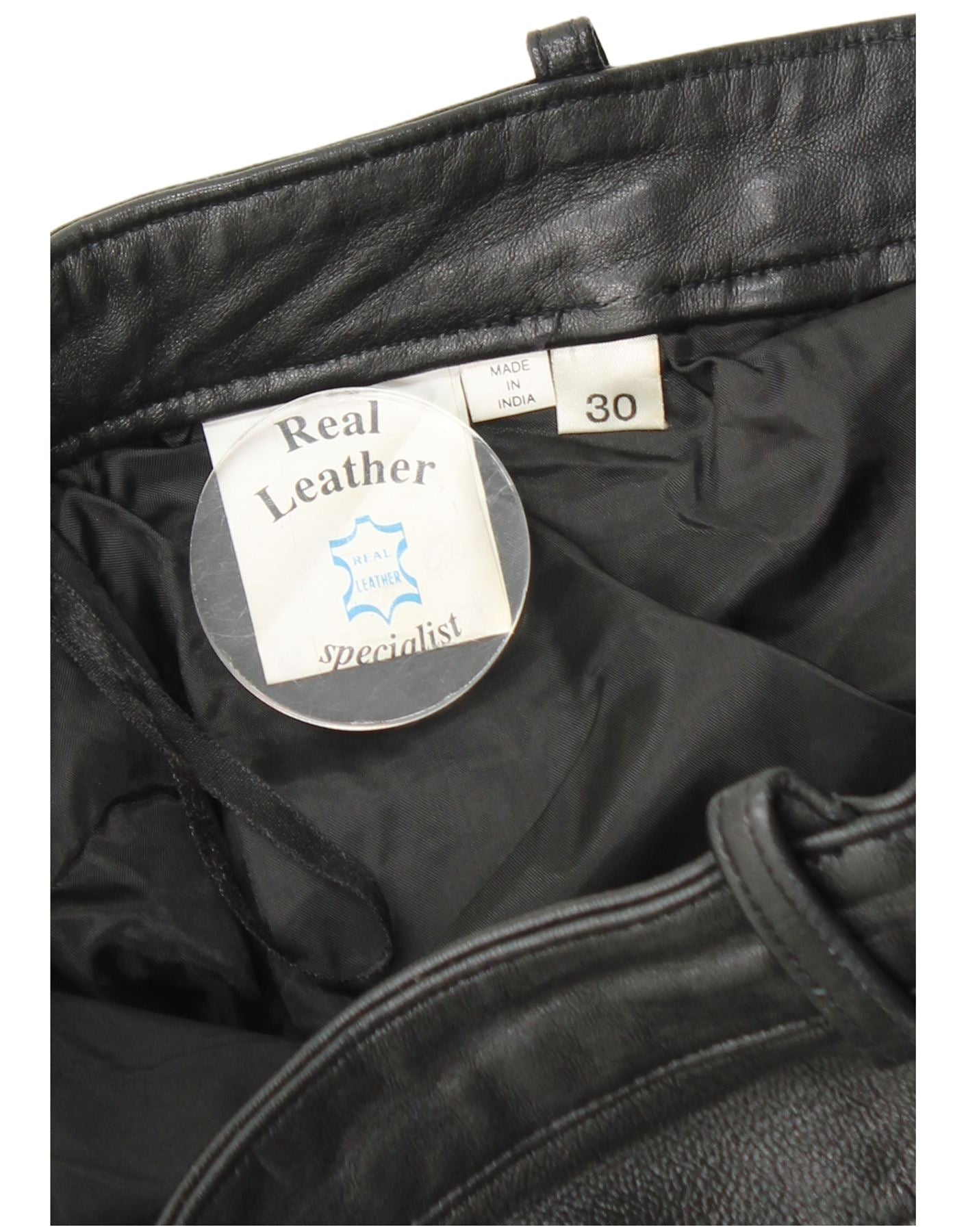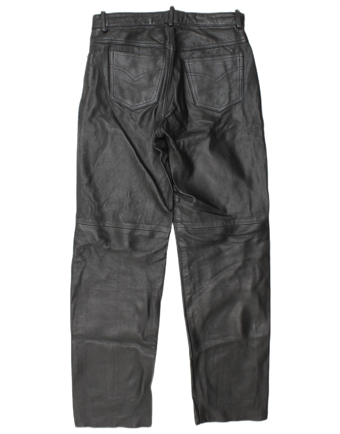 VINTAGE Gerade Herren-Lederhose W30 L32 Schwarzes Leder