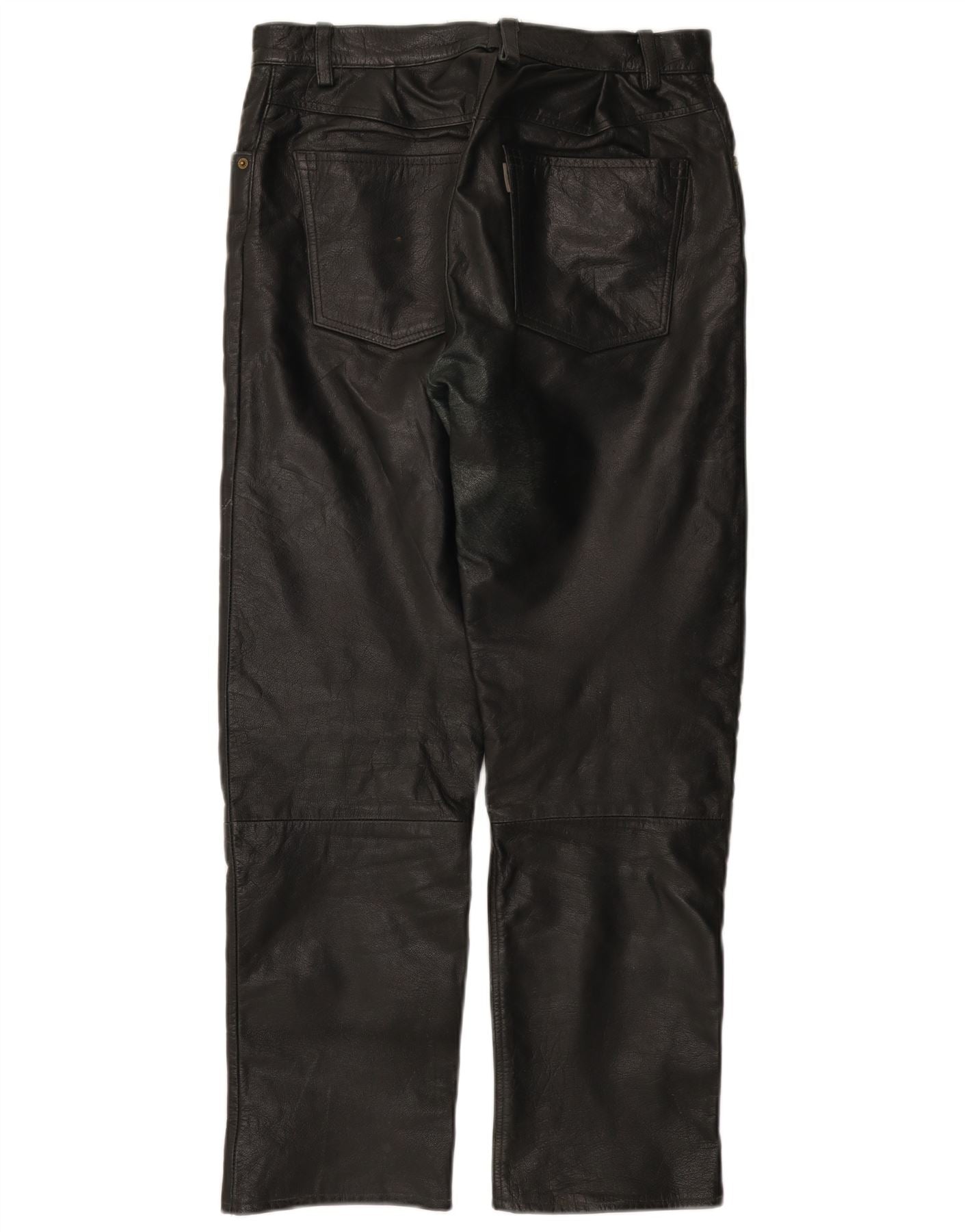 VINTAGE Gerade Herren-Lederhose W31 L30 Schwarz