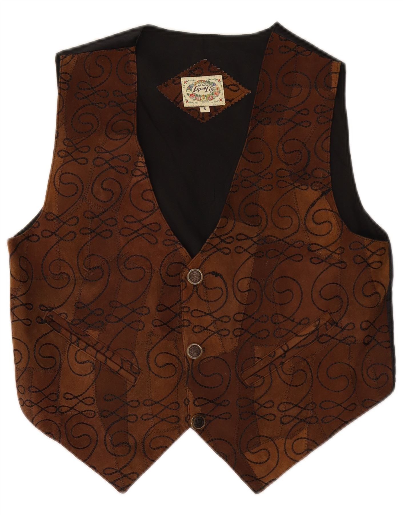 VINTAGE Herren Wildlederweste Kleines braunes Paisley-Leder