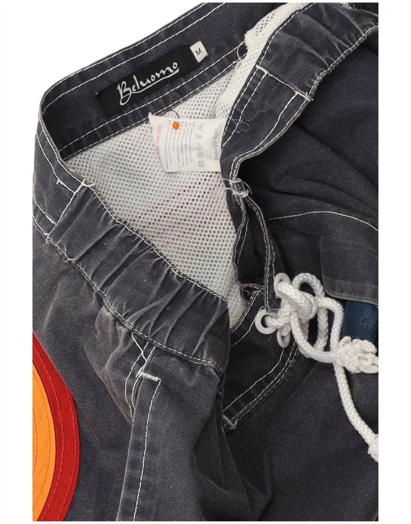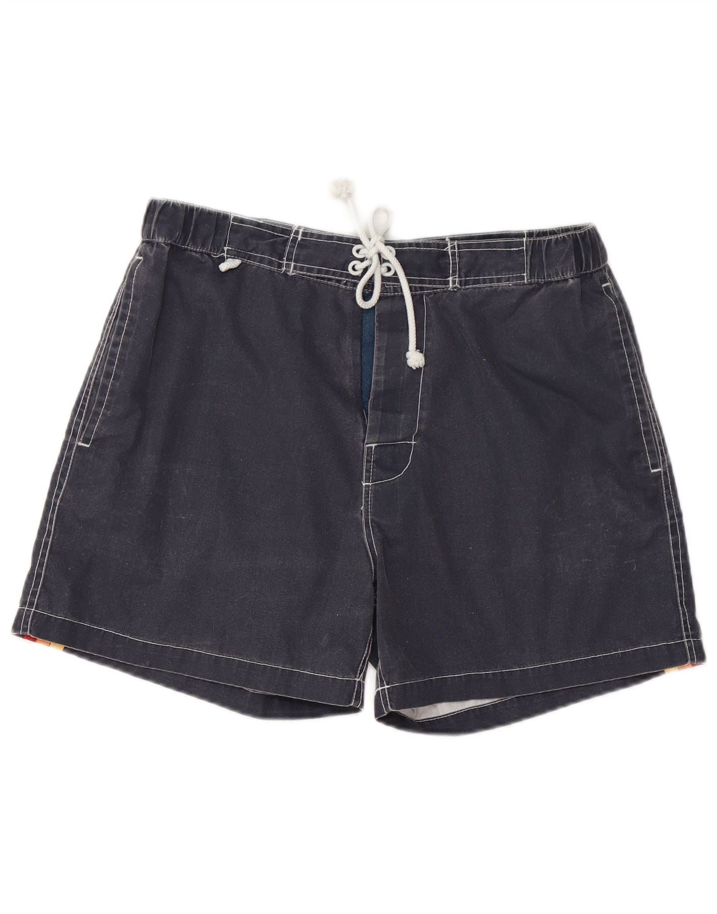 VINTAGE Herren-Badeshorts aus mittlerer marineblauer Colourblock-Baumwolle