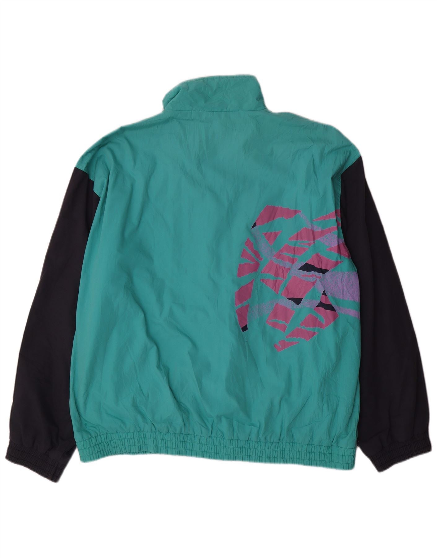 VINTAGE Herren-Trainingsanzug-Oberteil, Jacke, XL, türkisfarbenes Farbblock-Polyester