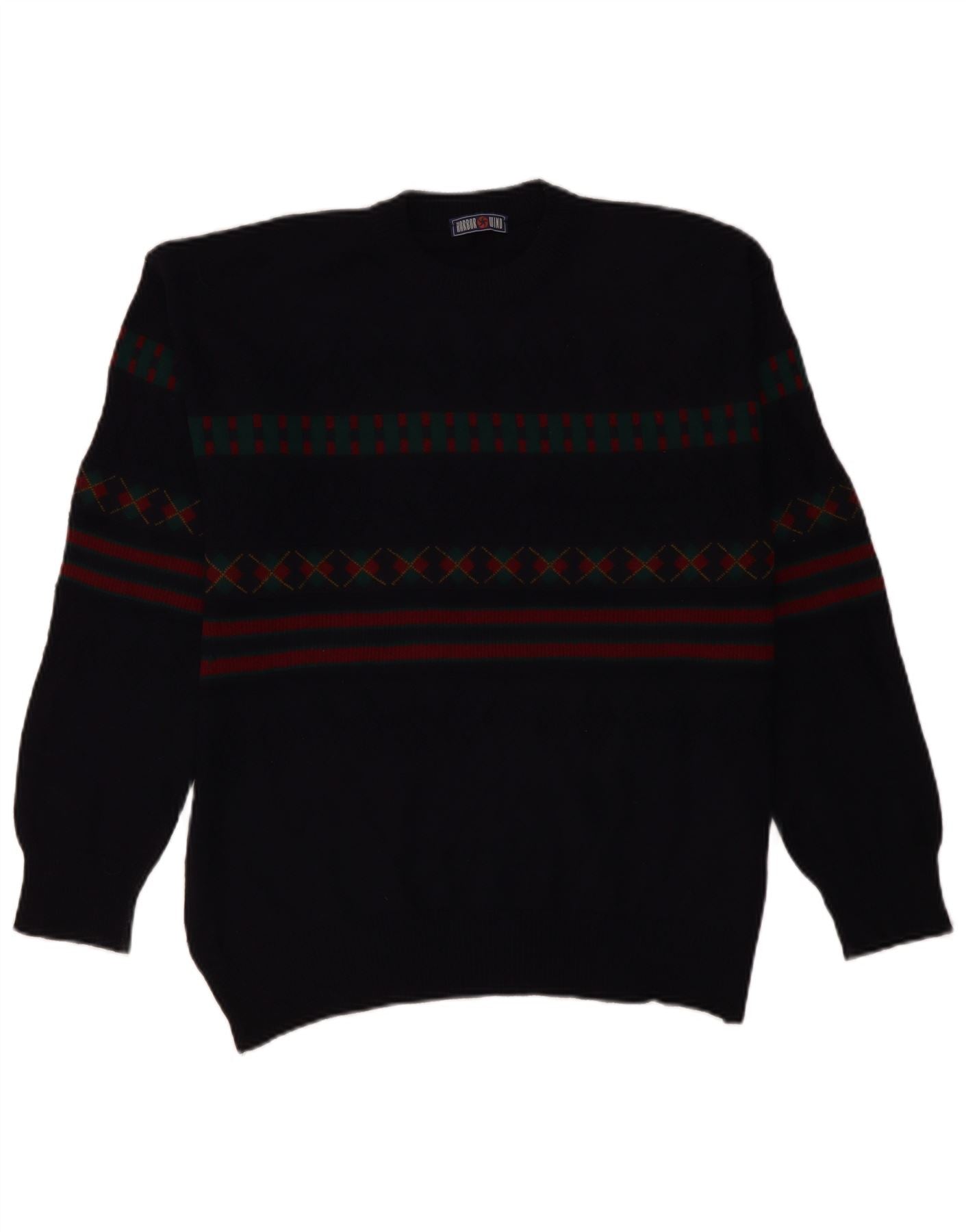 VINTAGE Herren-Pullover mit Rollkragen, Größe 50, groß, marineblau, geometrisch