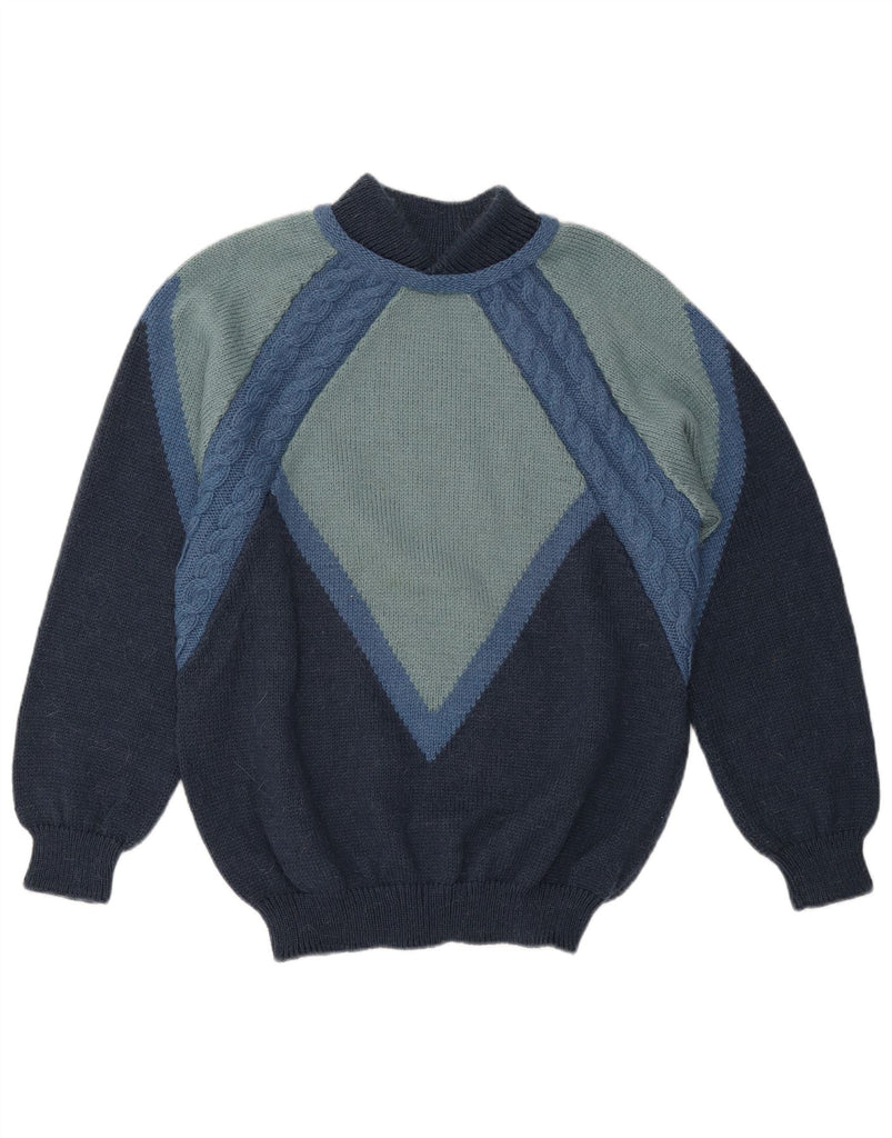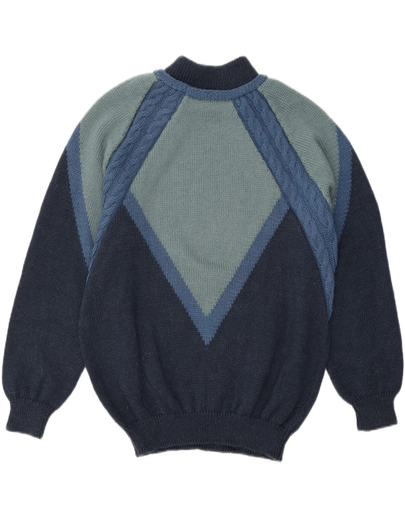 VINTAGE Herren-Pullover mit Rollkragen, mittelgroß, Marineblau, Farbblock