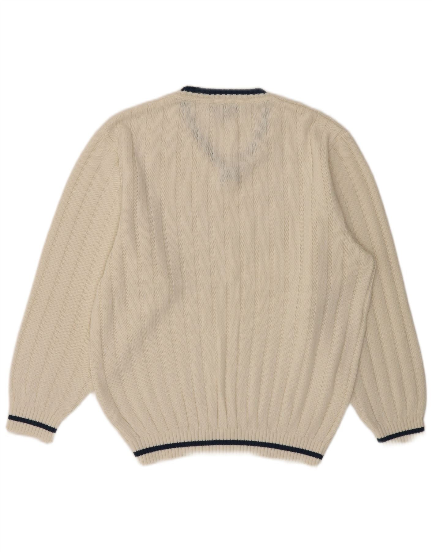 VINTAGE Herren-Pullover mit V-Ausschnitt, UK 40/42, mittelweißes Polyacryl