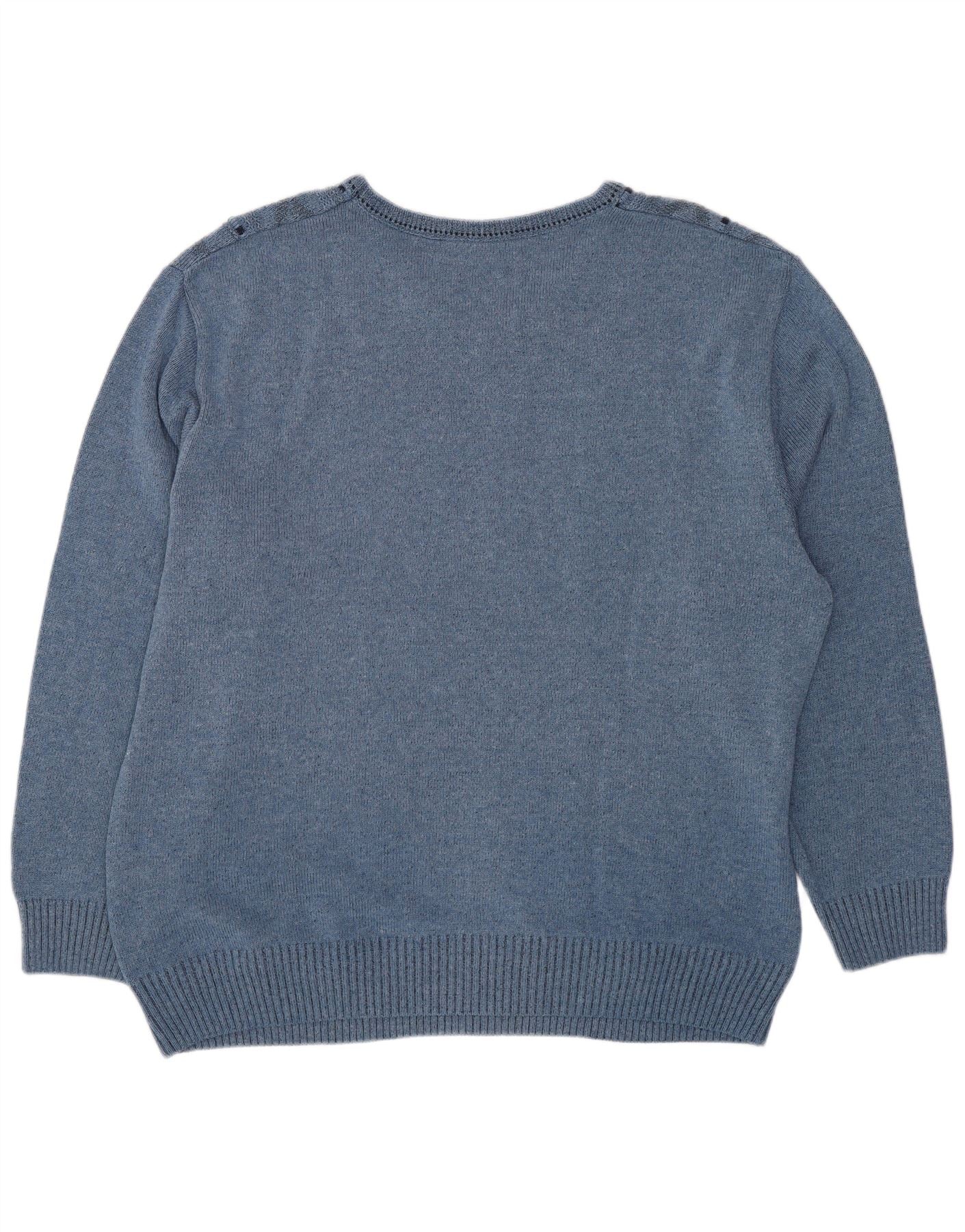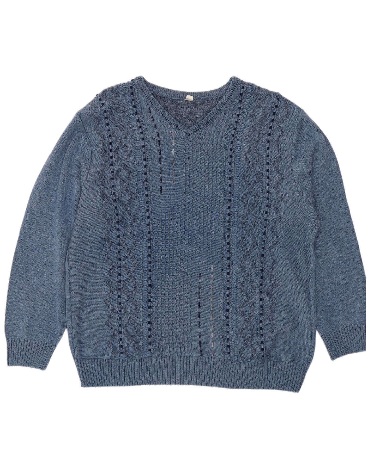 VINTAGE Herren V-Ausschnitt Pullover Pullover UK 44 XL Blaue geometrische Baumwolle