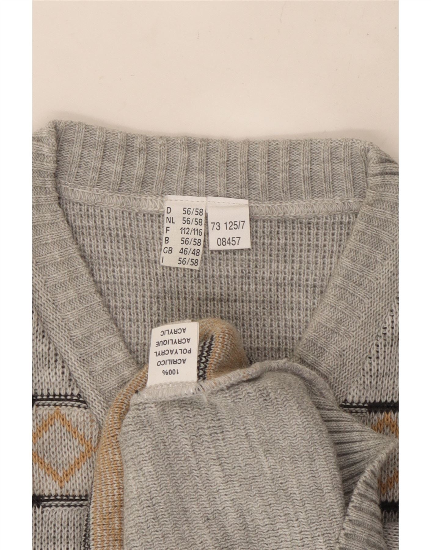 VINTAGE Herren Pullover mit V-Ausschnitt UK 46/48 2XL Grau Argyle/Diamant