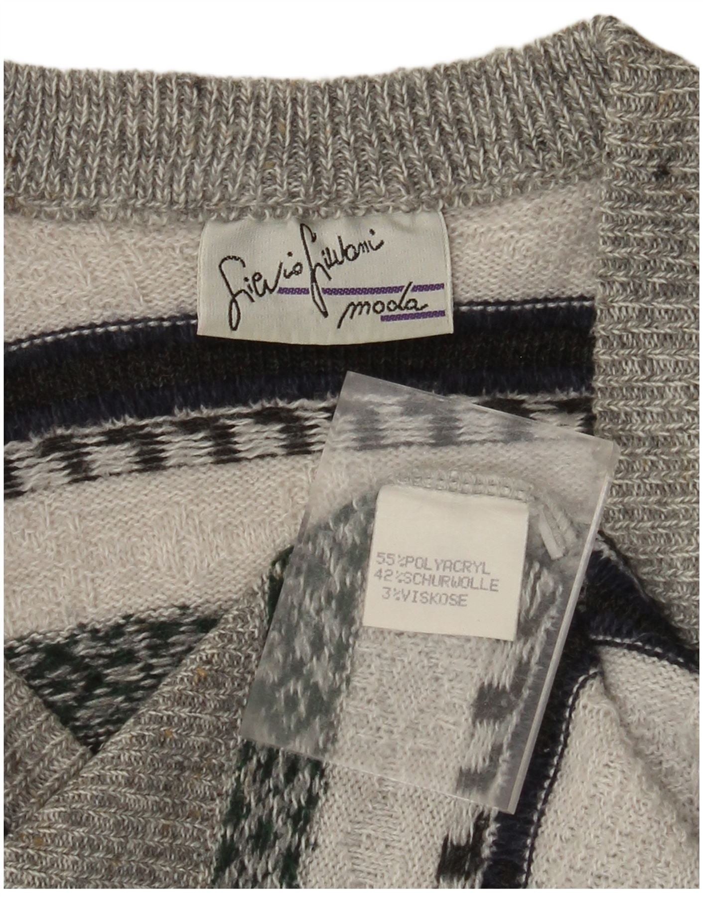 VINTAGE Herren Weste Tank Top Mittelgrau gestreift Polyacryl