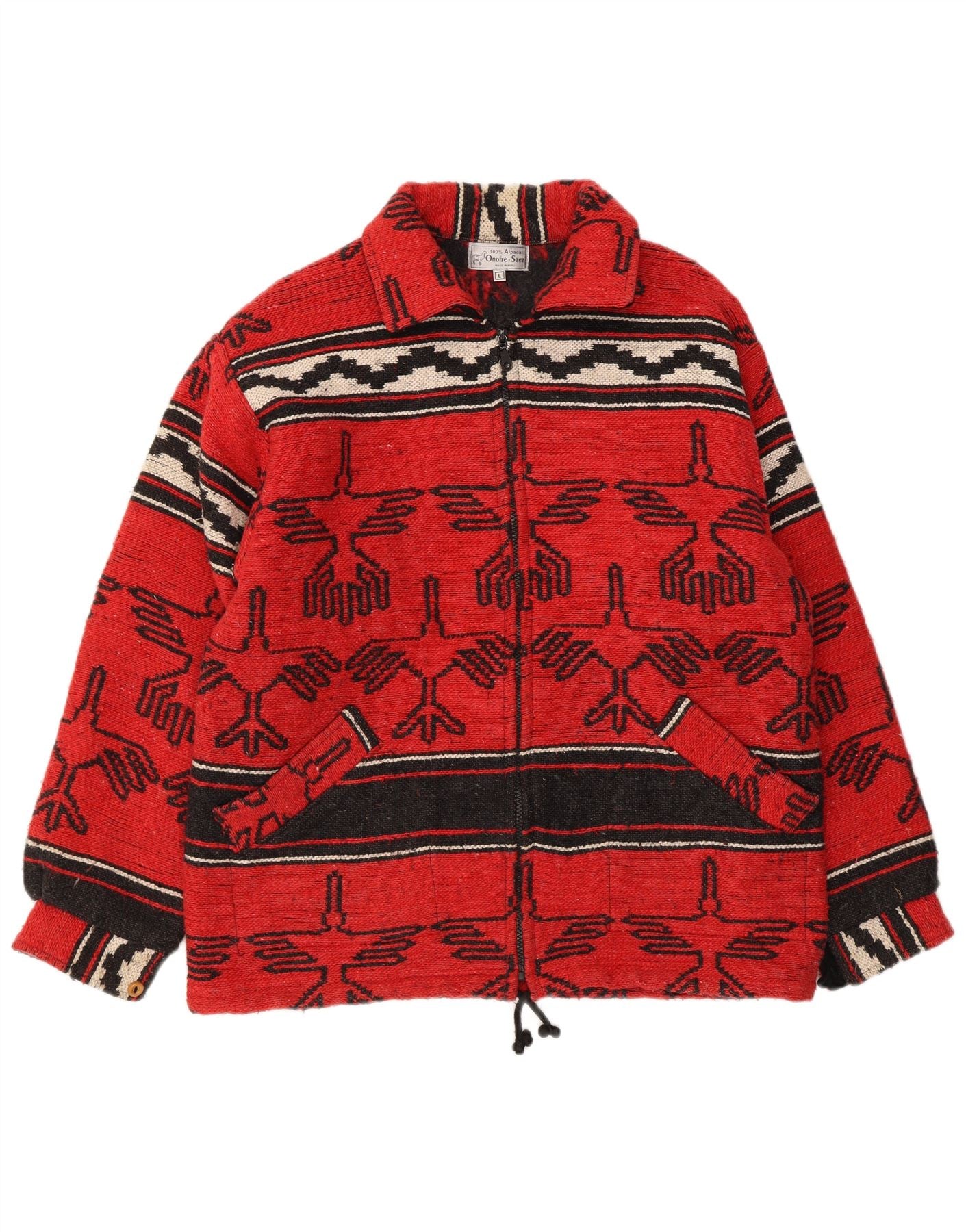 Vintage Herren-Windbreaker-Jacke, Größe 40, groß, rot, geometrisch, Tribal