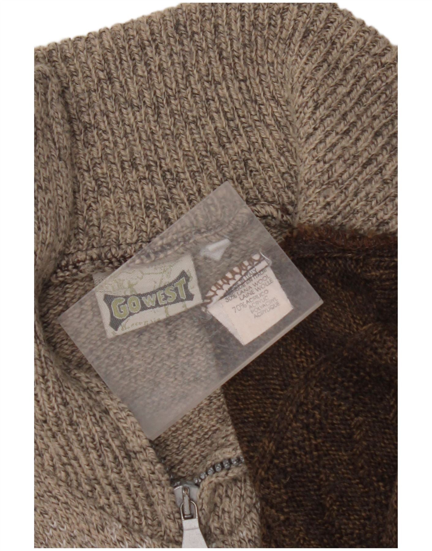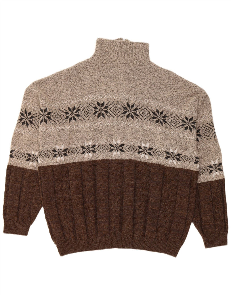 VINTAGE Herren-Pullover mit Reißverschluss, XL, braune Fair-Isle-Wolle