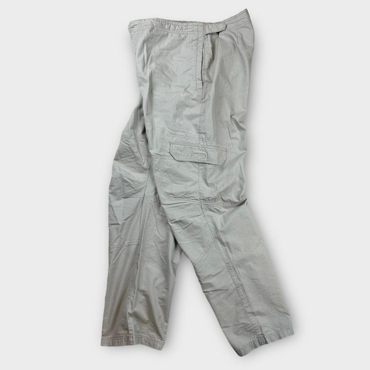 Ripstop-Nike-Cargos aus den frühen 2000ern in Beige mit einem Swoosh auf der Vorderseite und Cargotaschen