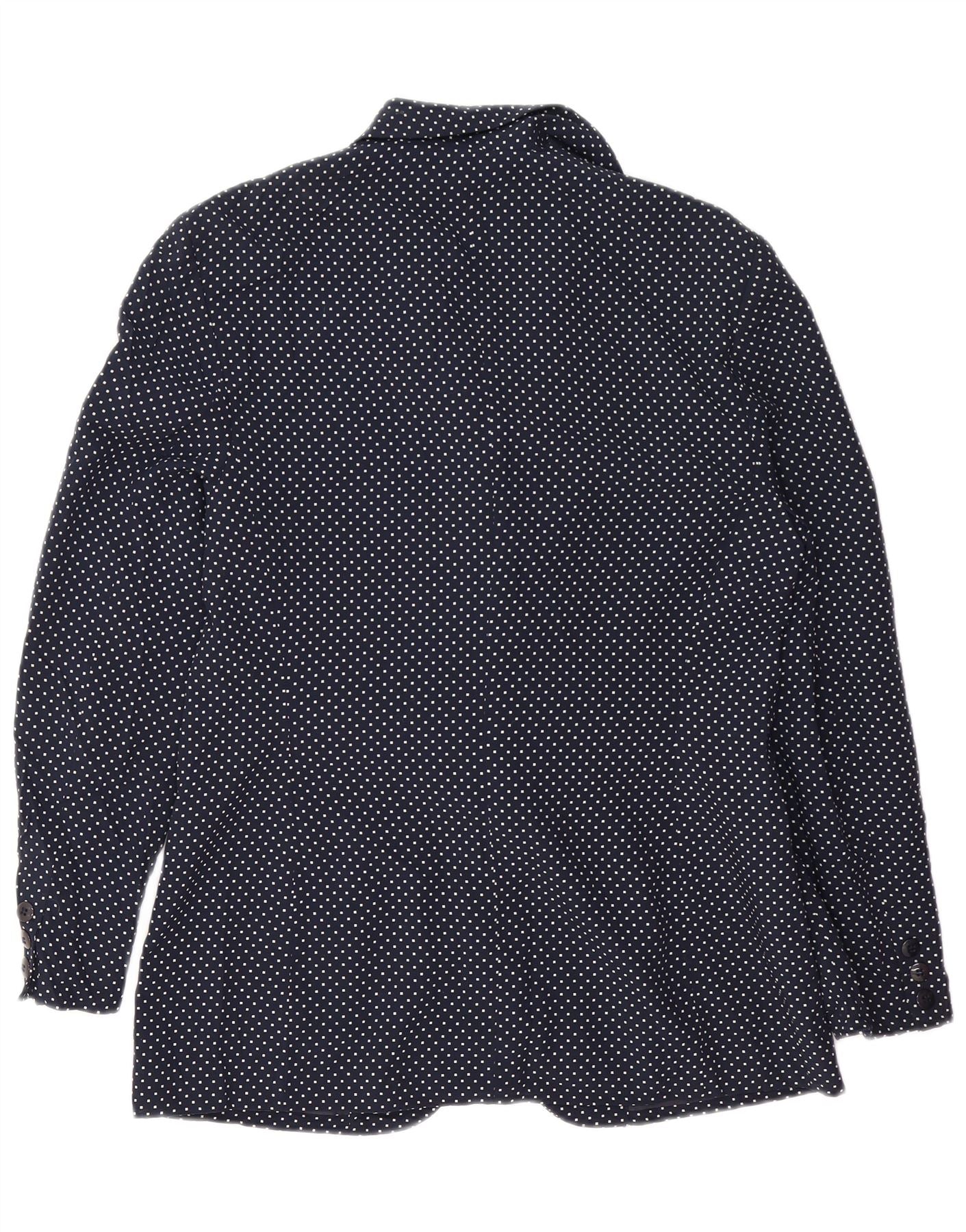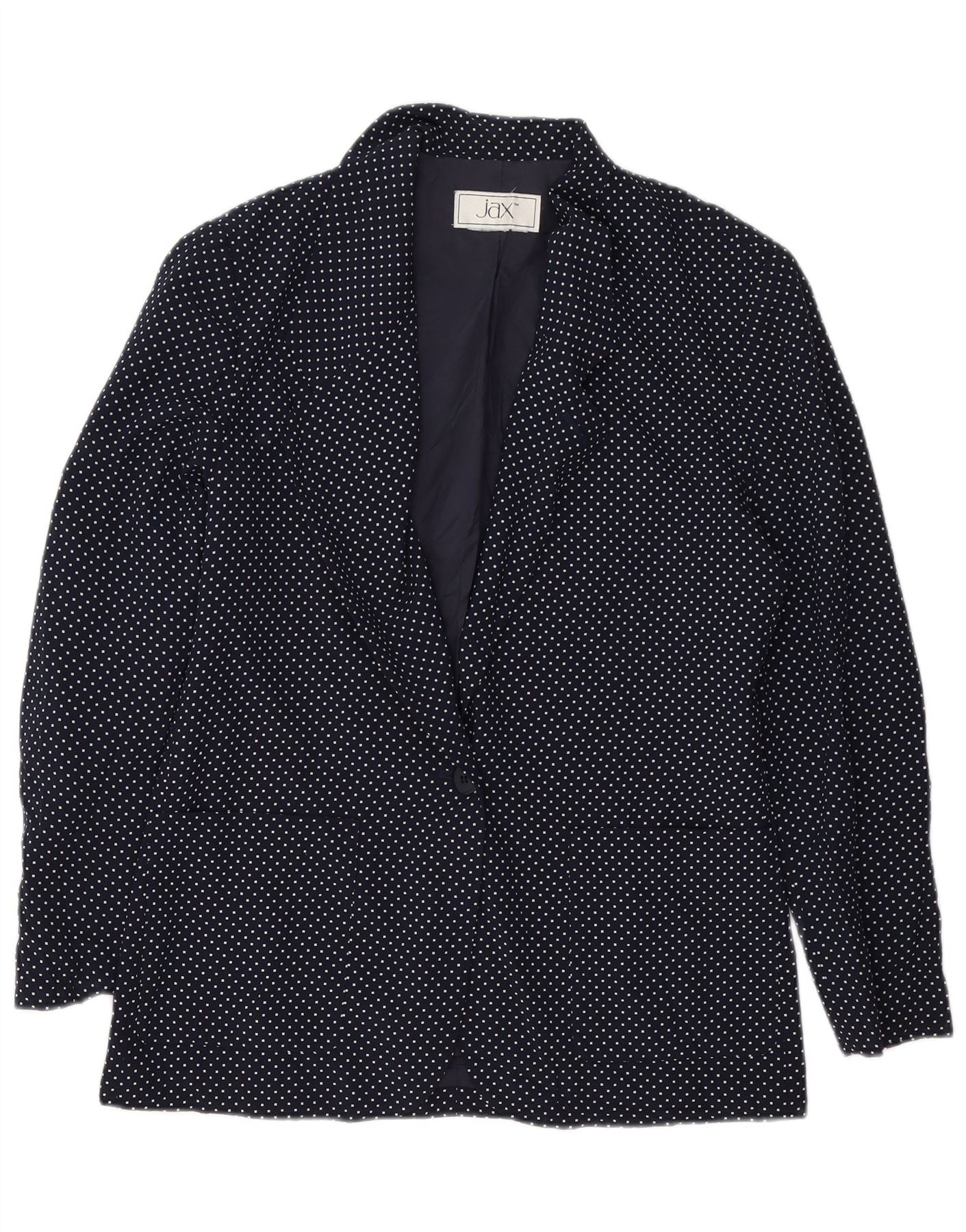 VINTAGE Damen 1-Knopf-Blazerjacke UK 14 Mittelmarineblau gepunktet