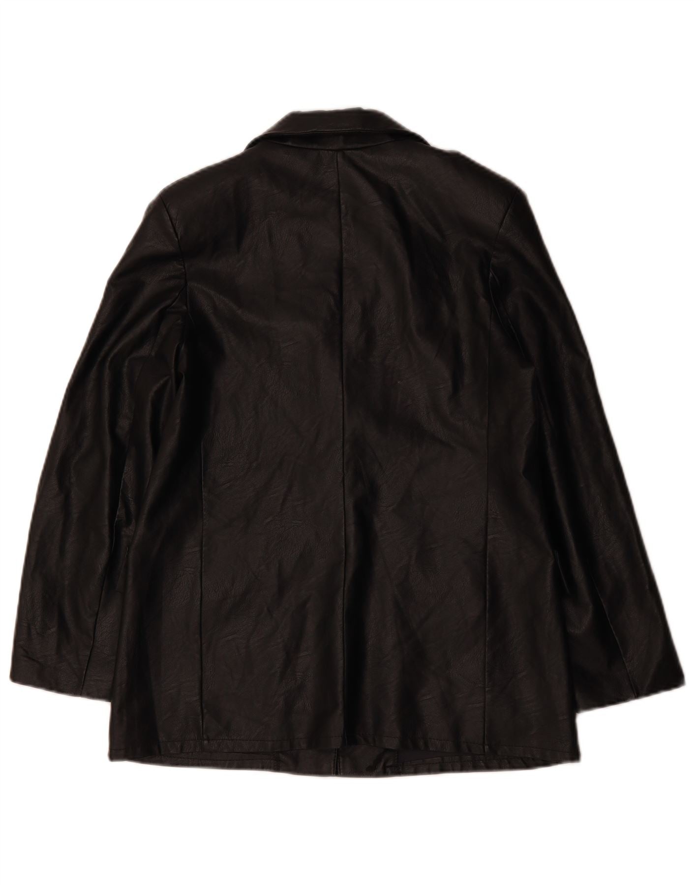 VINTAGE Damen 1-Knopf-Blazer aus Kunstleder, UK 12, Mittelschwarz