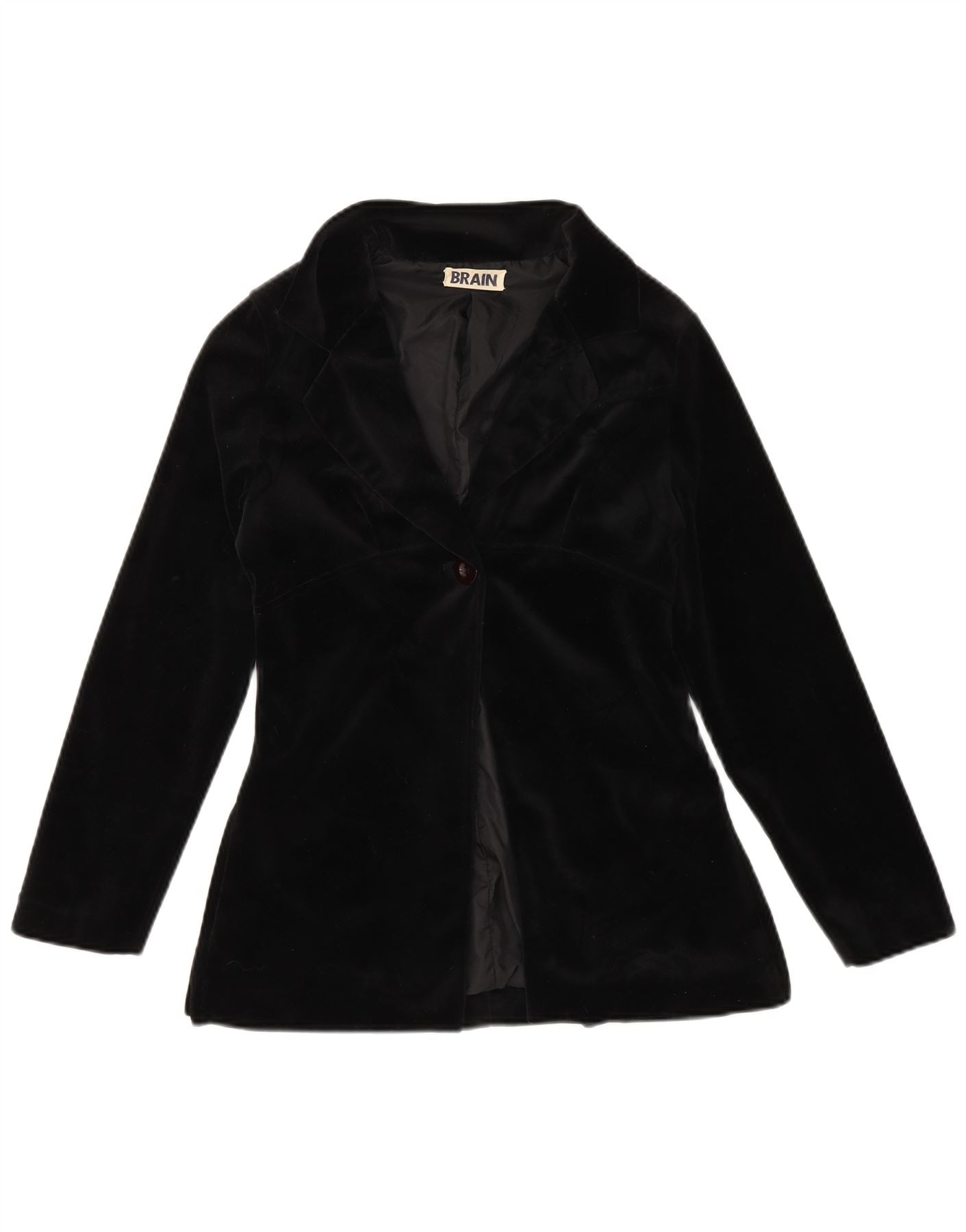VINTAGE Damen 1-Knopf-Samt-Blazerjacke UK 12 Mittelschwarz
