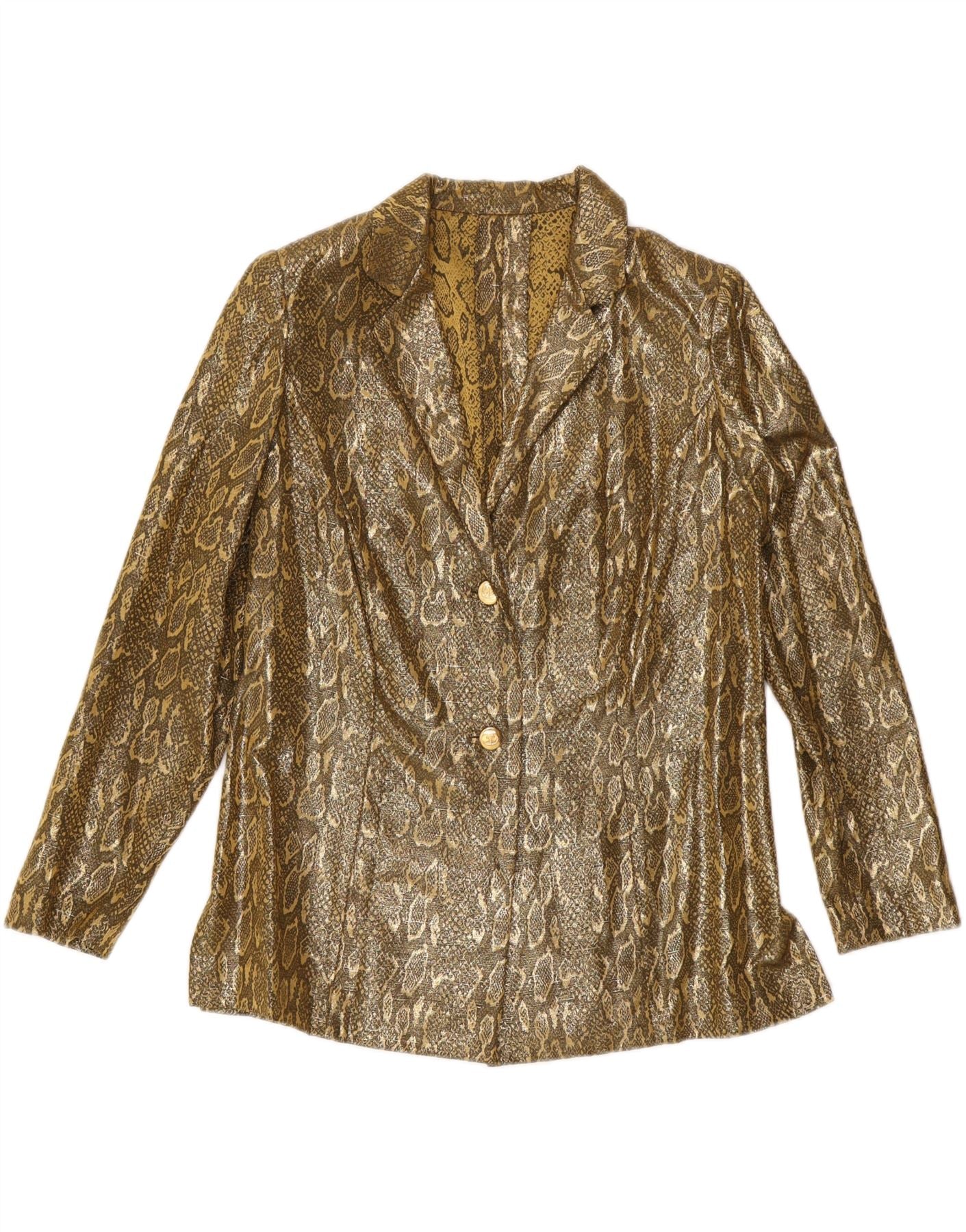 VINTAGE Damen 2-Knopf-Blazerjacke UK 14 Medium Gold Animal Print