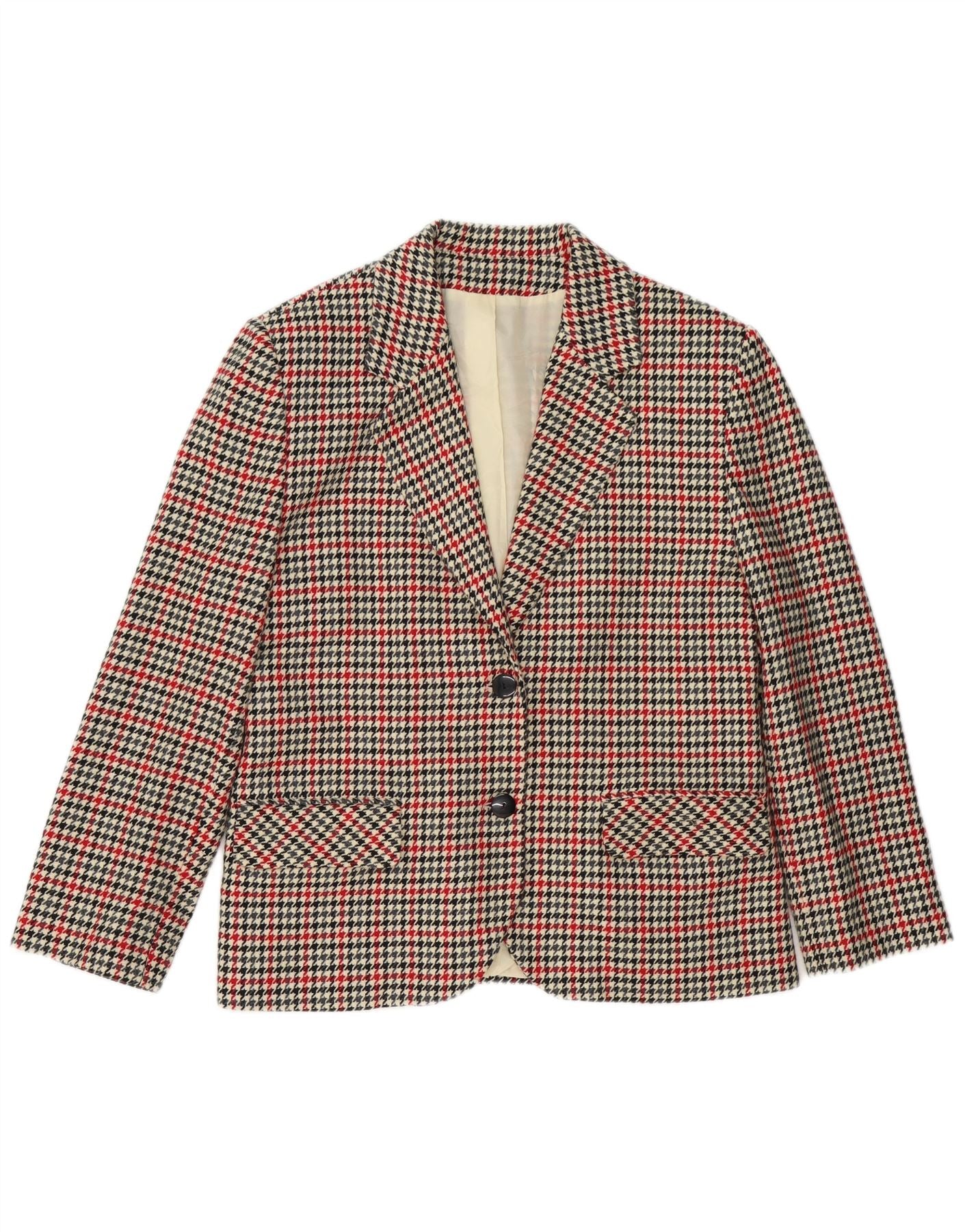VINTAGE Damen 2-Knopf-Blazerjacke UK 16 Large Beige Houndstooth