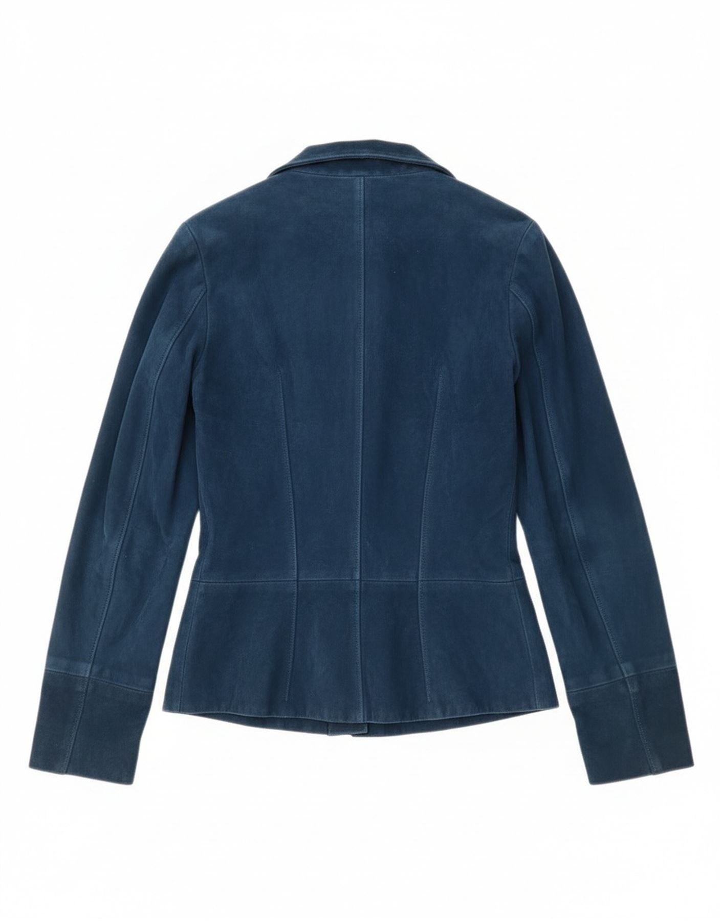 - KI-Beschreibung: Diese Vintage-Wildlederjacke für Damen ist aus luxuriösem marineblauem Wildleder gefertigt und bietet ein weiches, haptisches Finish. Es verfügt über einen klassischen Kragenausschnitt und lange Ärmel. Die reguläre Passform sorgt für eine bequeme Silhouette. Ein Knopfverschluss sichert die Vorderseite, ergänzt durch funktionelle Taschen. Die Jacke ist vollständig gefüttert, was ihr strukturiertes Gefühl und ihren Retro-Stil unterstreicht.