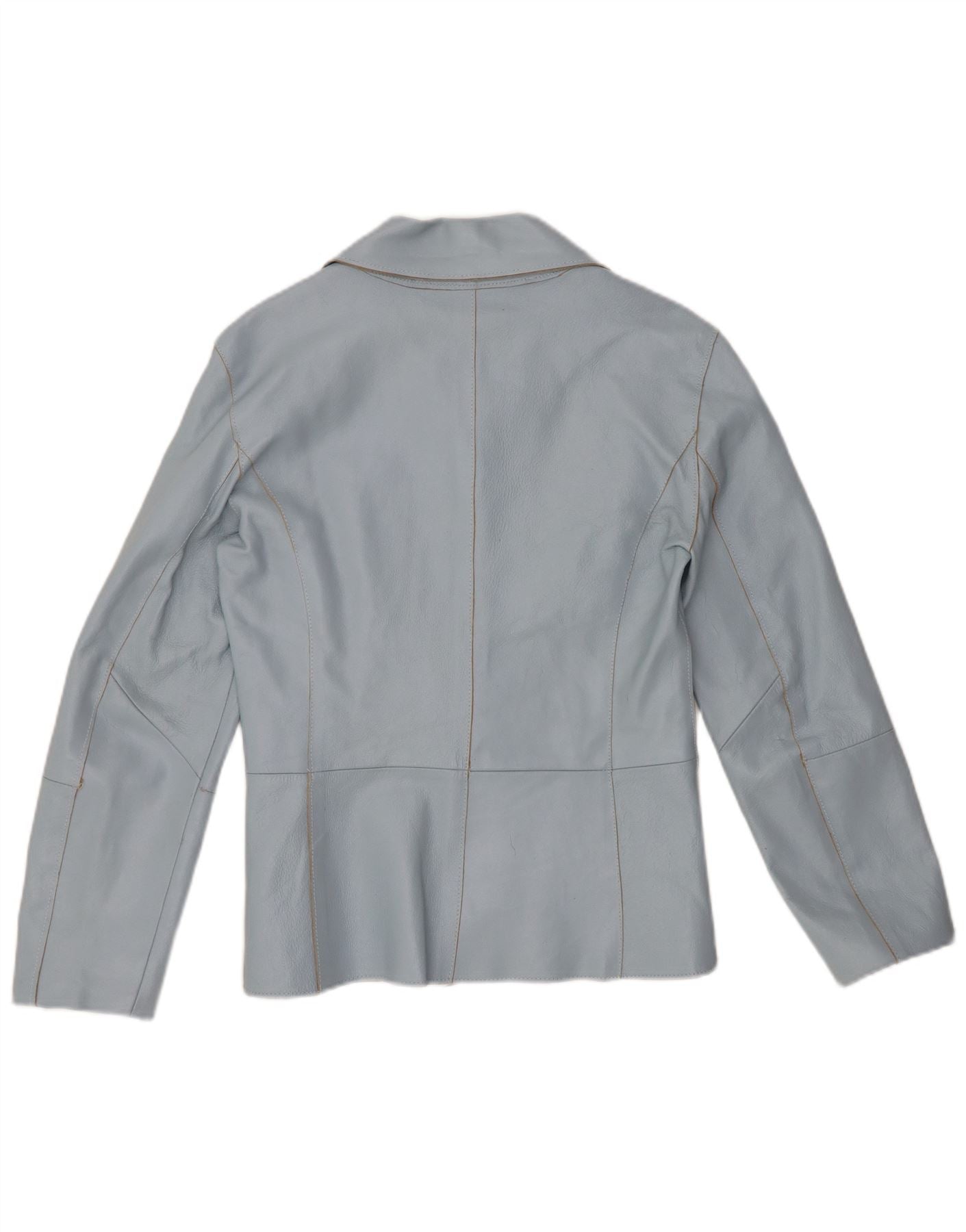 VINTAGE Damen 2-Knopf-Lederblazerjacke UK 12 Mittelblau