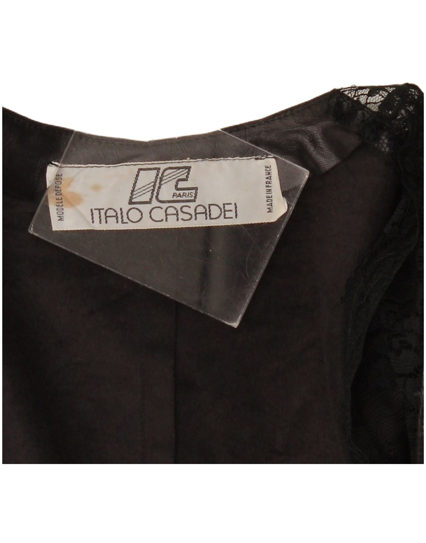 - KI-Beschreibung: Dieses Damenblusenoberteil von Italo Casadei ist aus schwarzem Satinstoff gefertigt und bietet einen luxuriösen Glanz. Es verfügt über eine entspannte Fledermaus-Passform mit 3/4-Ärmeln. Zarte Spitzendetails zieren die Vorderseite und die Ärmel und sorgen für einen Gothic-Touch. Der vordere Verschluss ist ein Krawattendesign. Verstellbare Elemente und dezente Taschen unterstreichen den einzigartigen Stil. Dieses Stück vereint Eleganz mit einer unverwechselbaren Ästhetik.