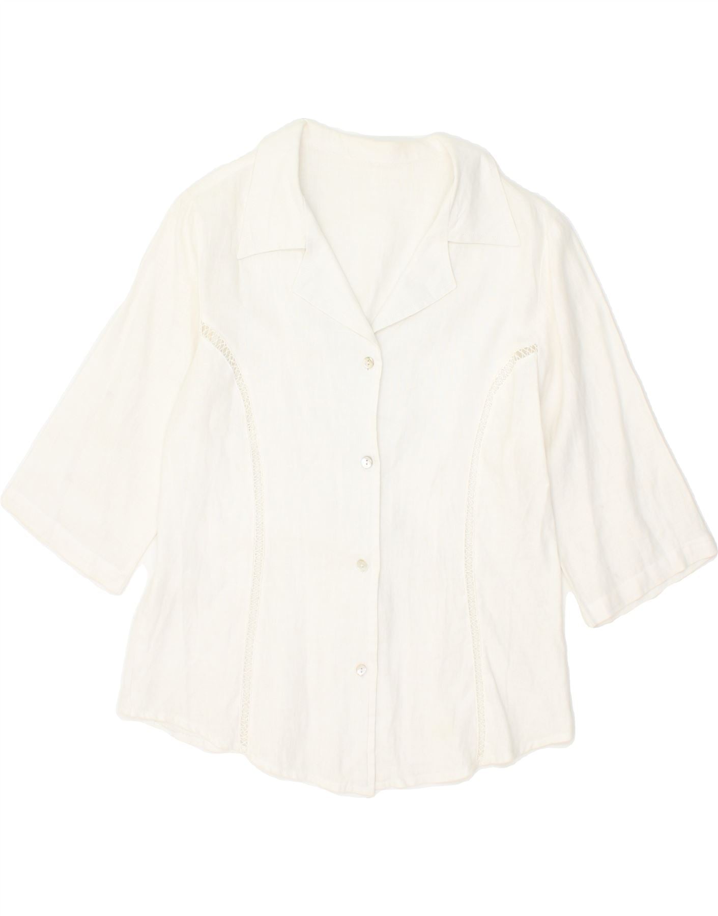 VINTAGE Womens 3/4 Sleeve Shirt Blouse UK 12 Medium White