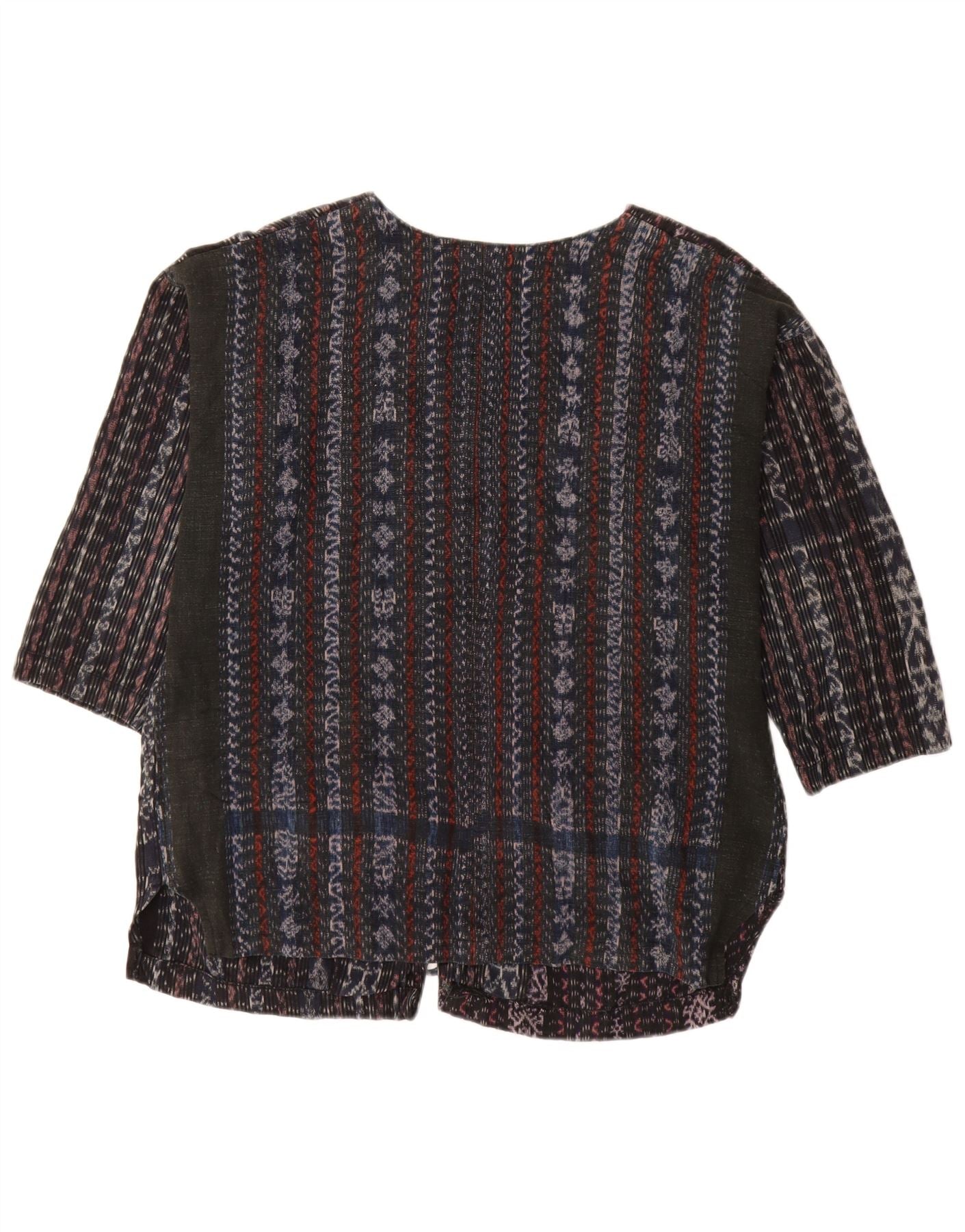 VINTAGE Damen 3/4-Ärmel-Hemdbluse UK 18 XL Schwarz gestreift