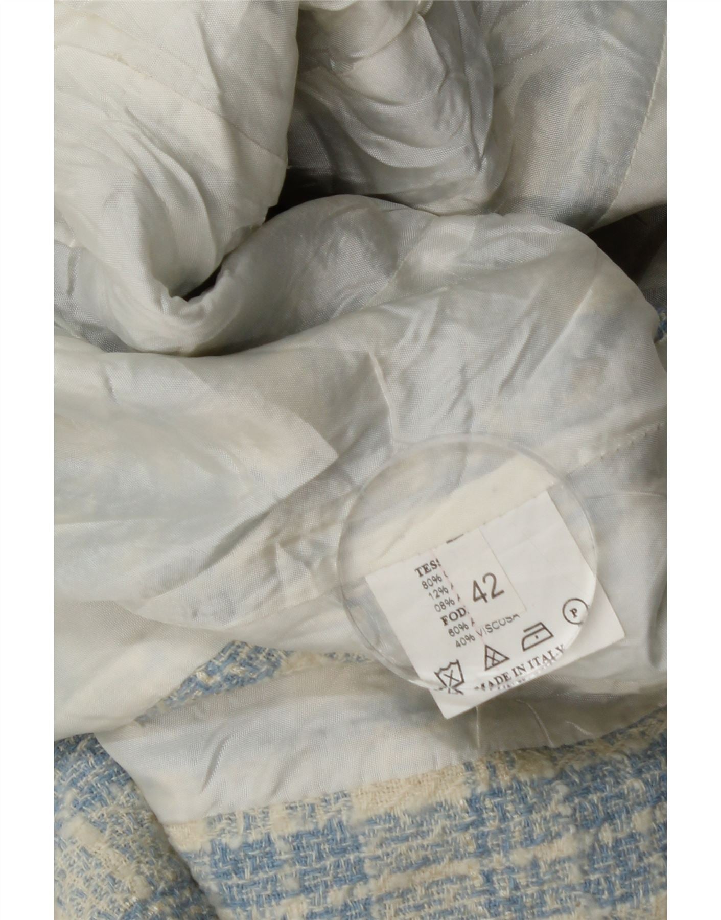 Vintage Damen 3-Knopf-Blazer-Jacke IT 42 mittelblau karierte Baumwolle