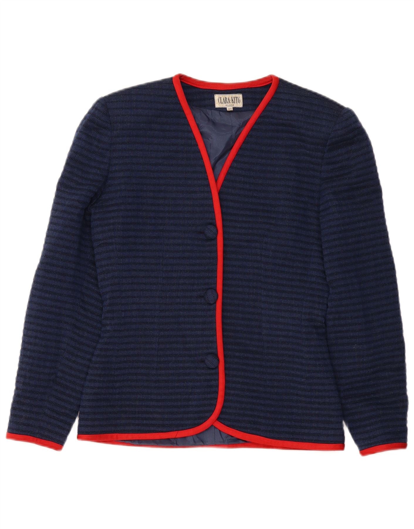 VINTAGE Damen 3-Knopf-Blazerjacke IT 44 Mittelmarineblau gestreift