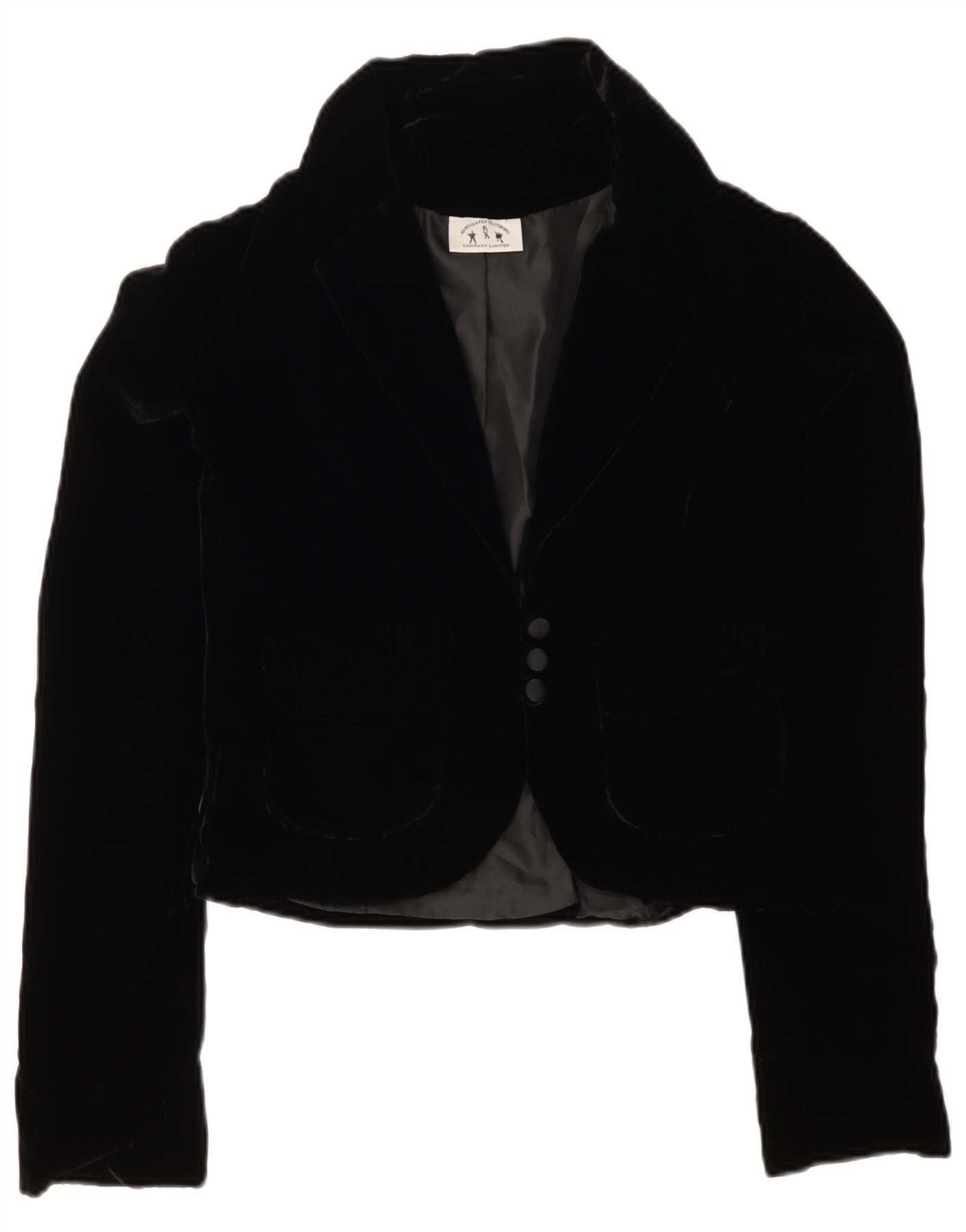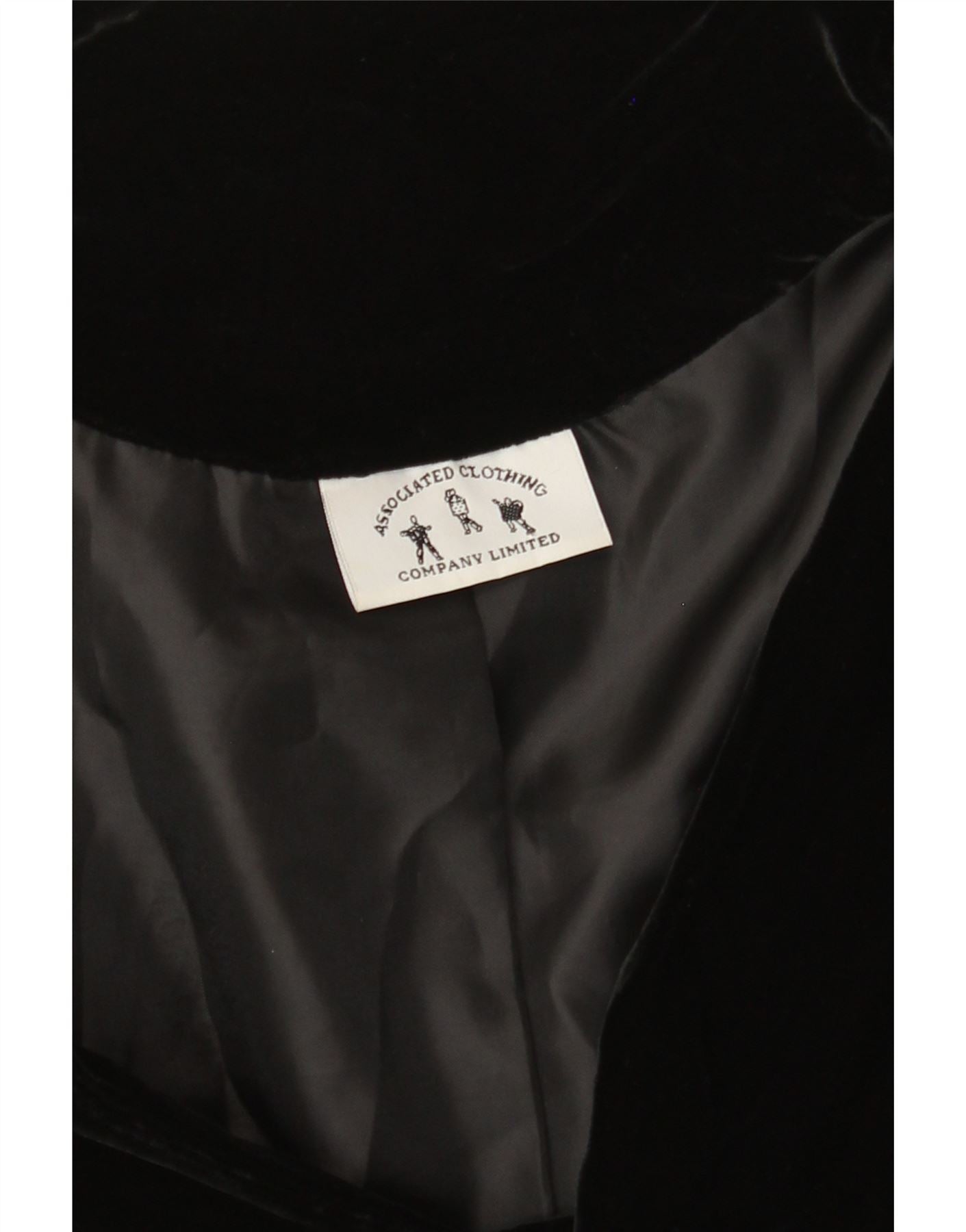 VINTAGE Damen 3-Knopf-Samt-Blazerjacke UK 12 Mittelschwarz