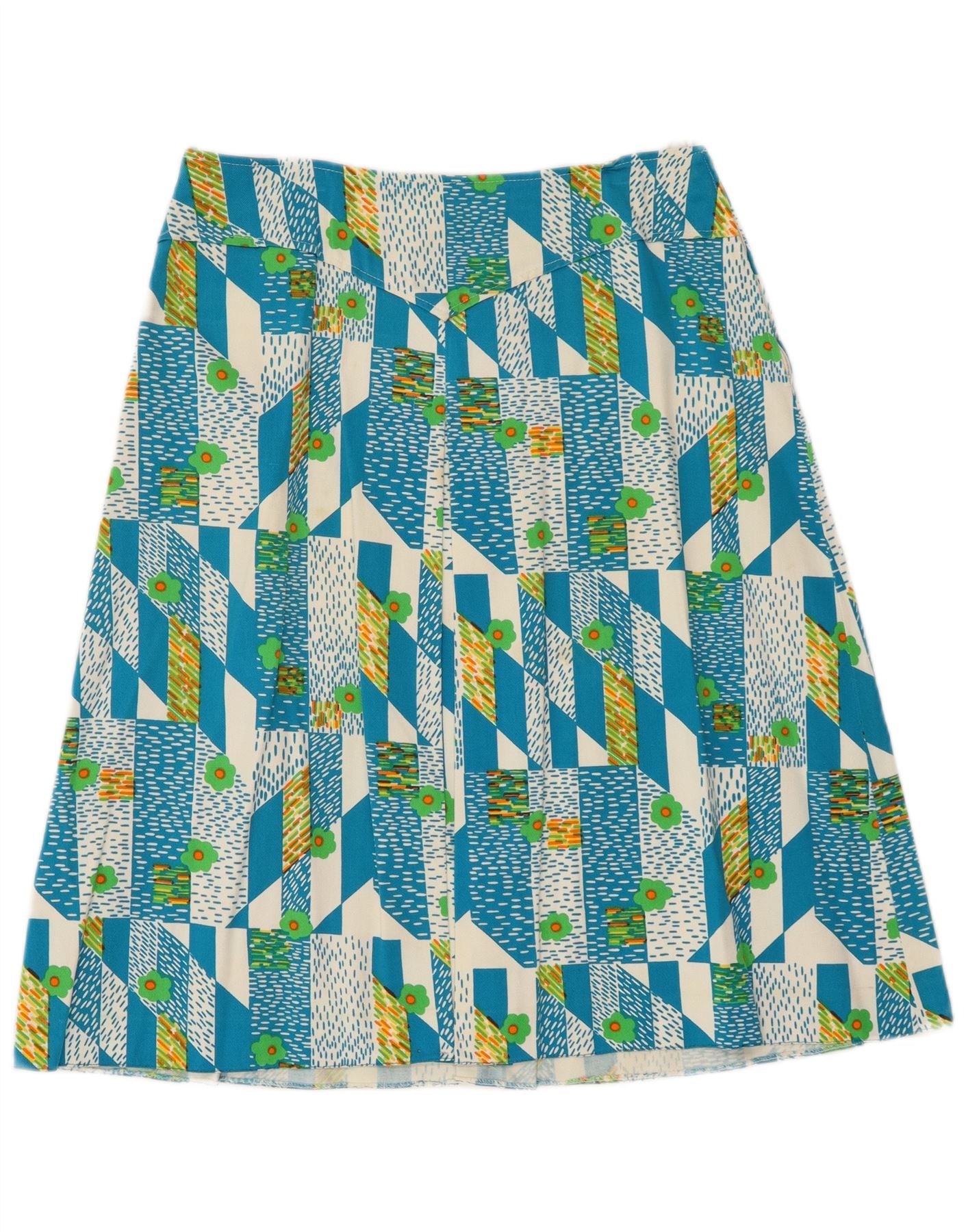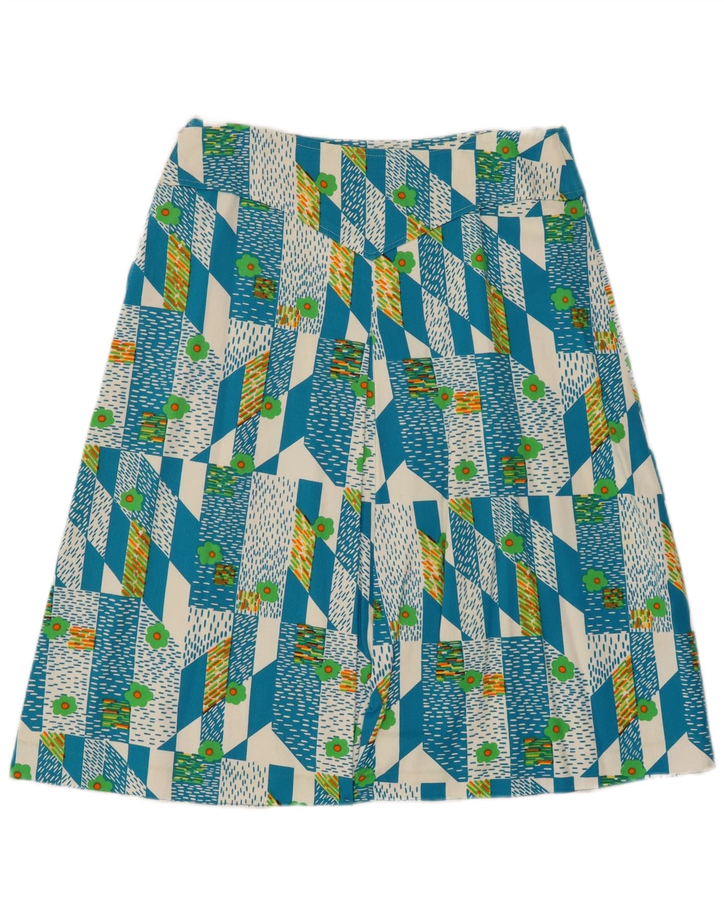 VINTAGE Damen A-Linienrock IT 48 XL W38 Blau Geometrisch