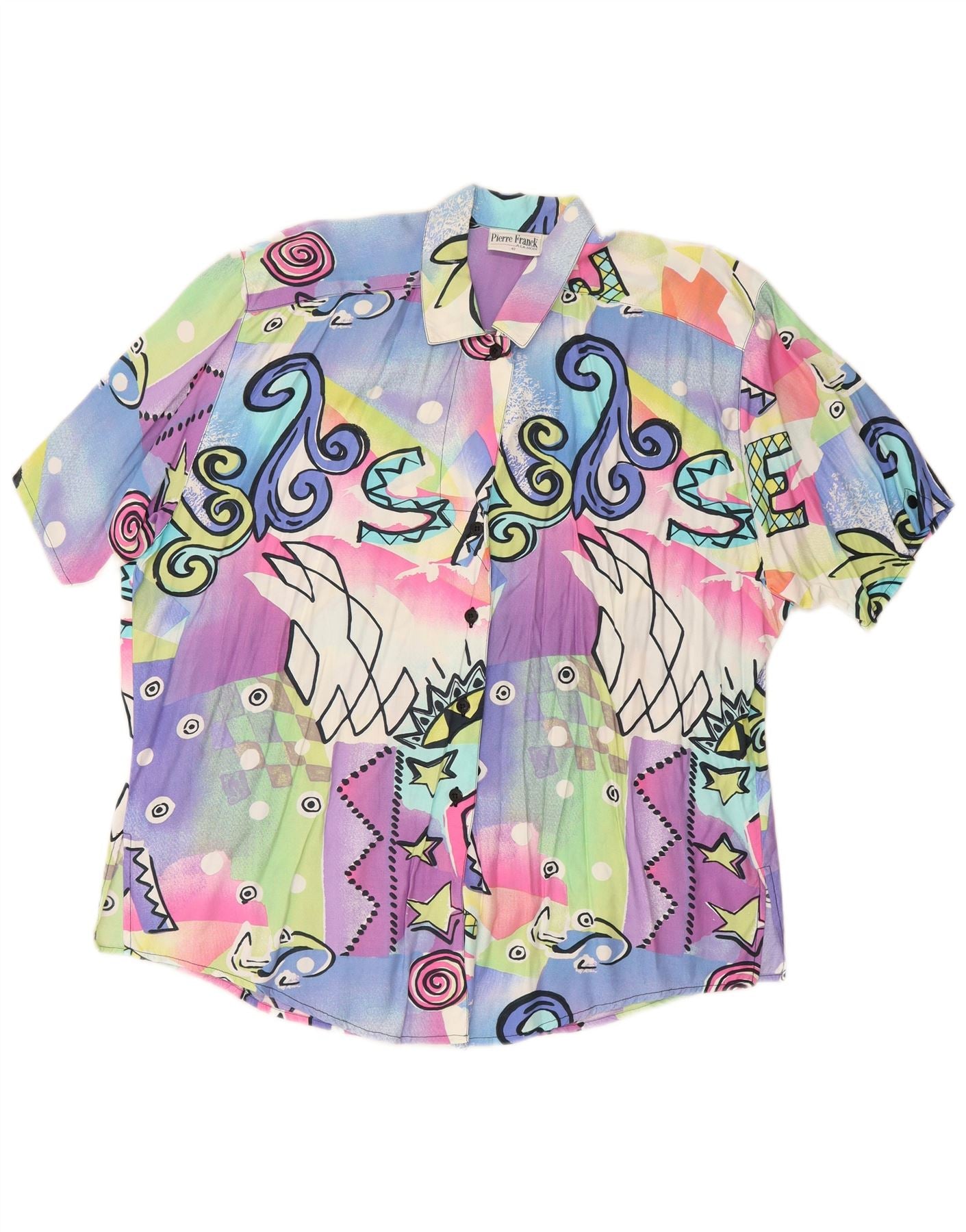 VINTAGE Damen-Hemdbluse mit abstraktem Muster, EU 42, groß, mehrfarbig